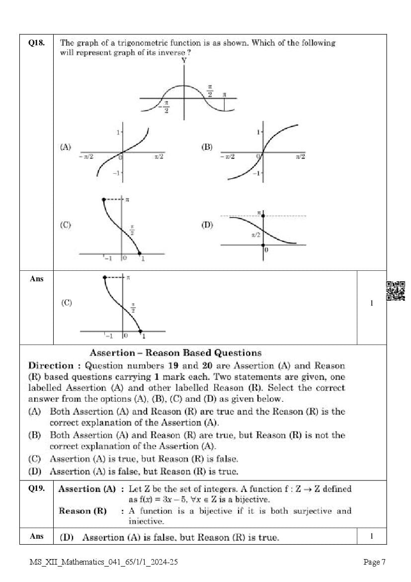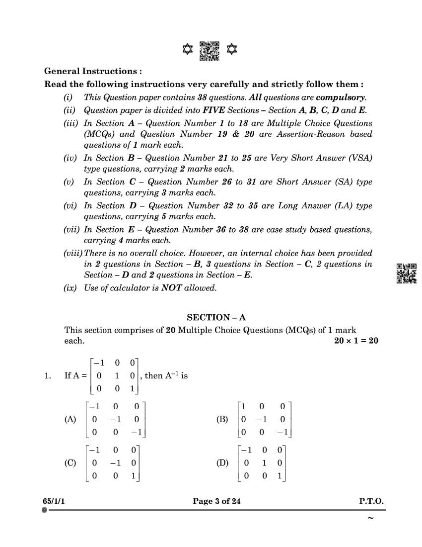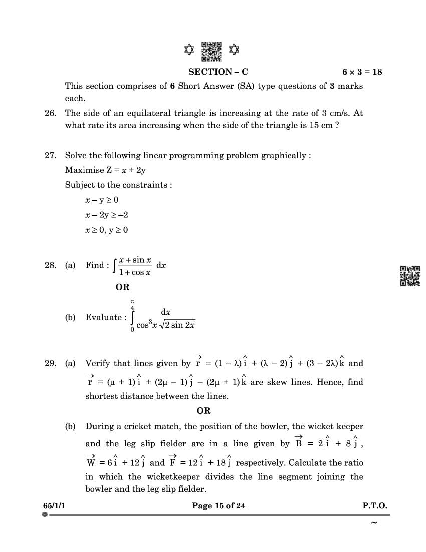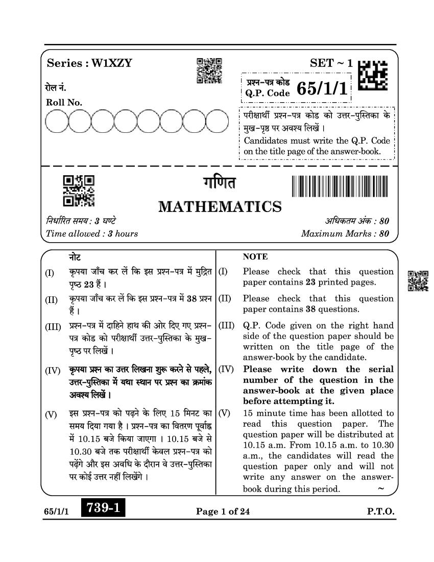 Class 12 Maths Question Paper 2025