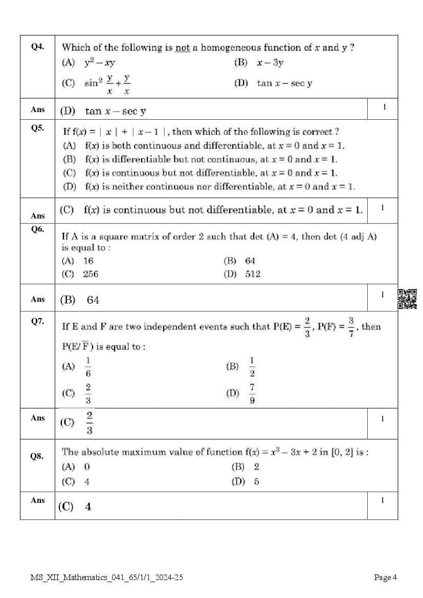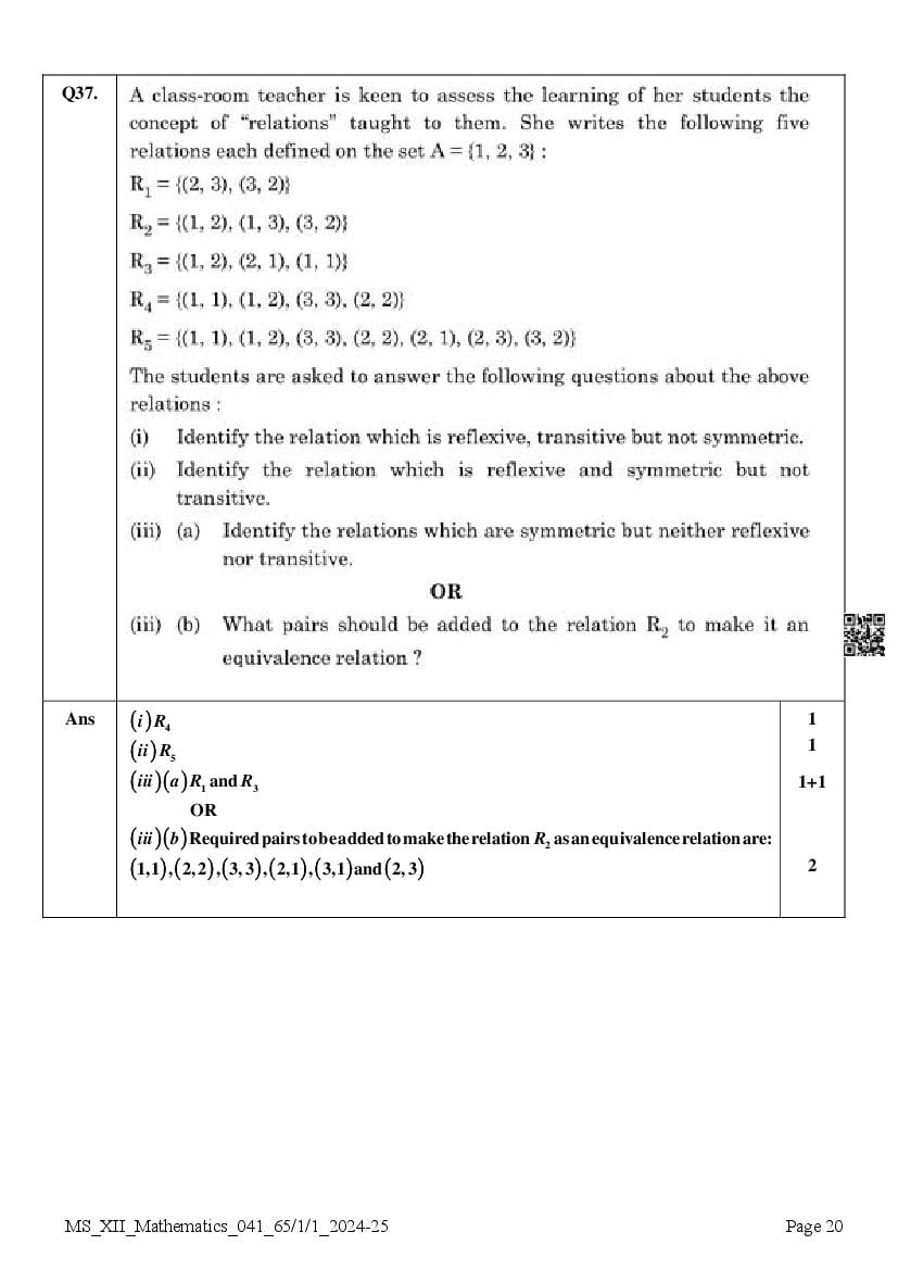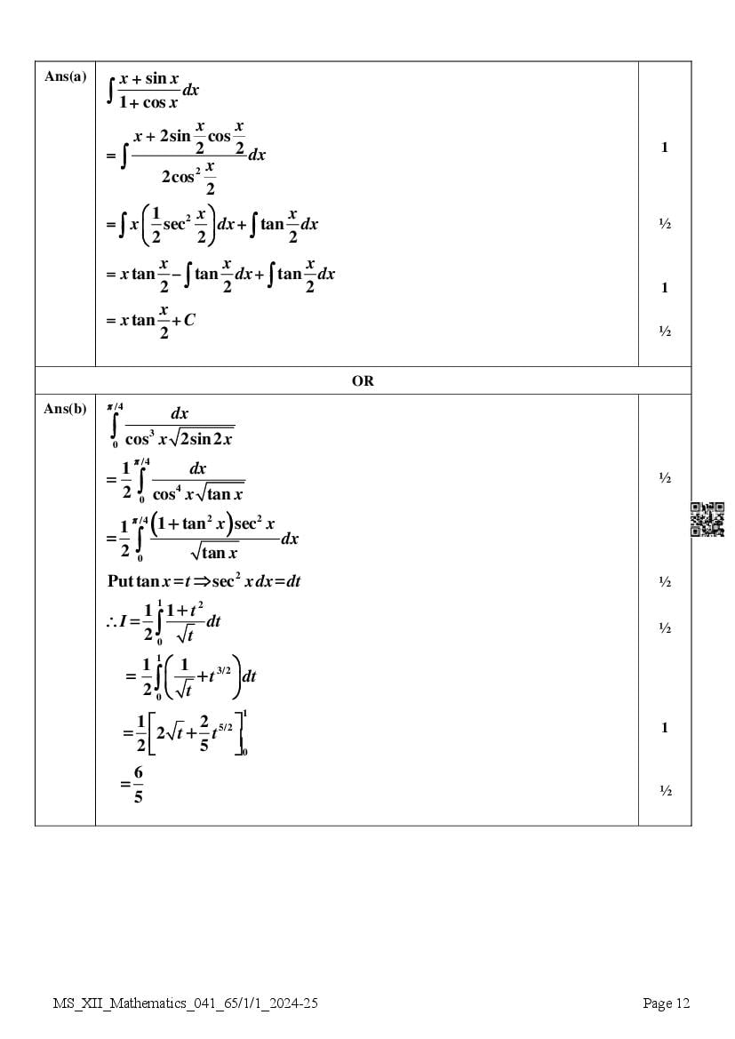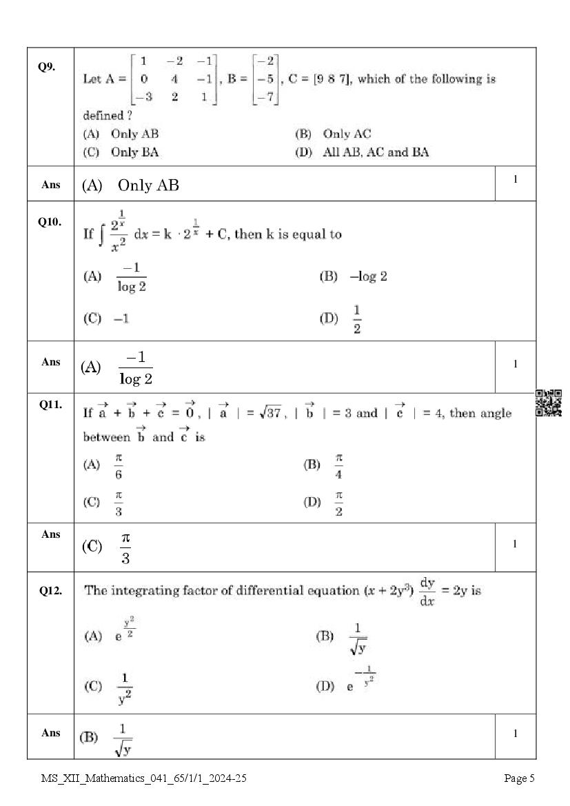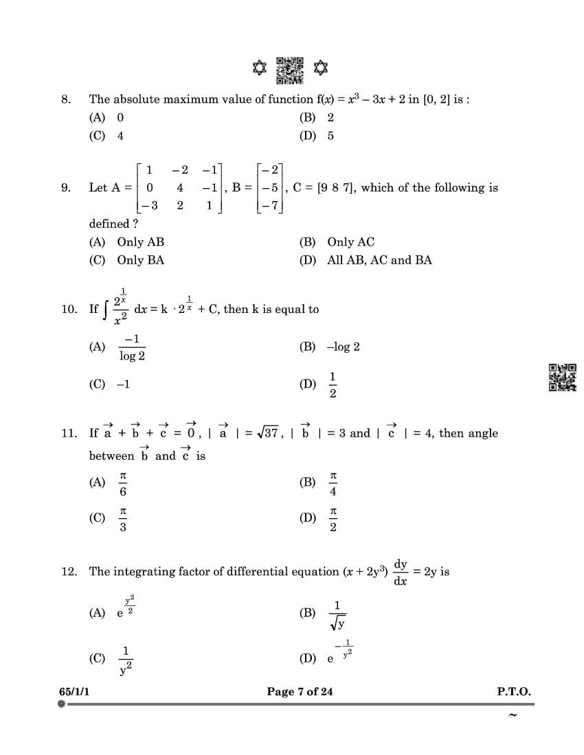 Class 12 Question Paper 2025 Maths View Download