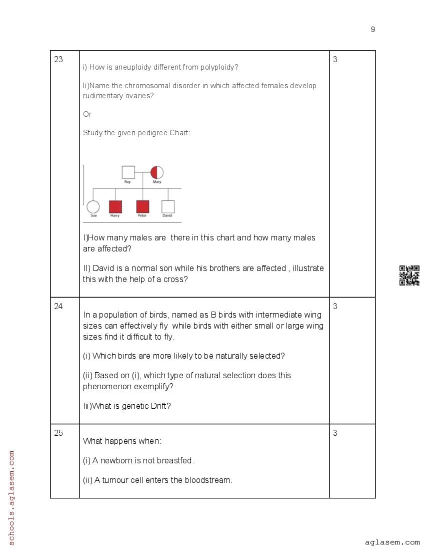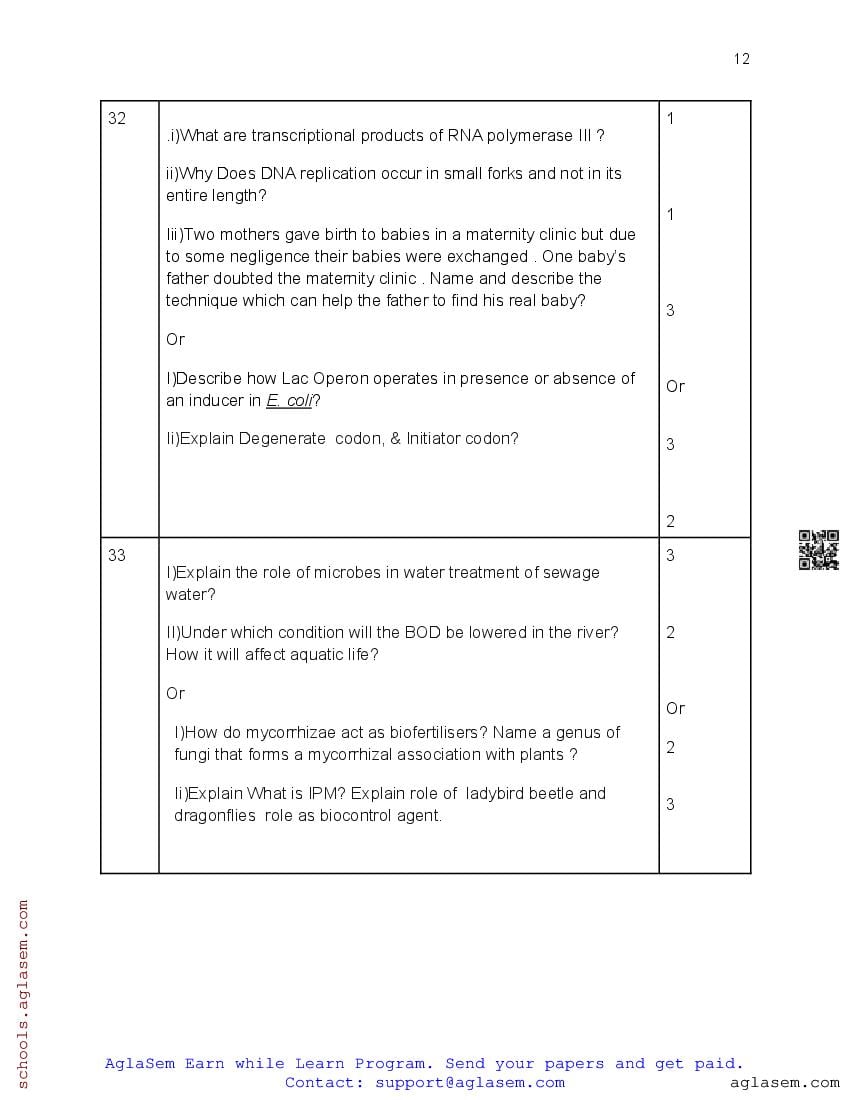 You can view and download Sample Paper for Standard 12 Mid-Term Exam 2025 for Biology subject from aglasem.