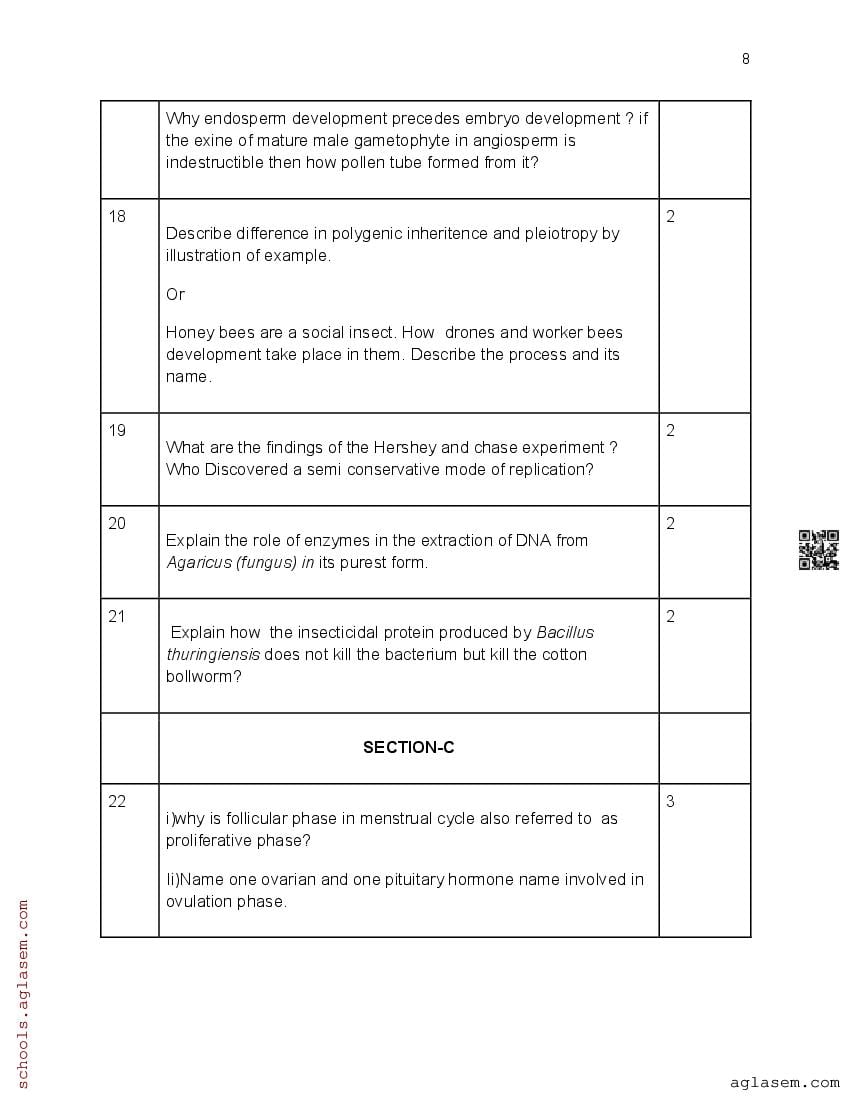 The direct link to download Std 12 Biology model question paper mid term is given above. While you can easily download the Biology sample paper from aglasem. In case you want to read the complete mid term specimen paper for Biology, then that provision is also available on this page. The complete class 12 Biology mid term sample paper pdf is given below.