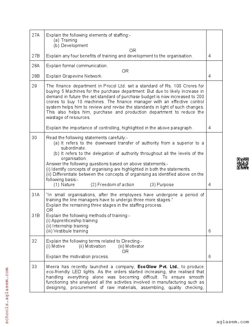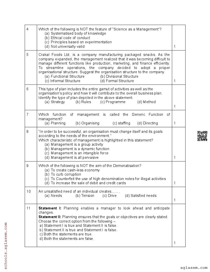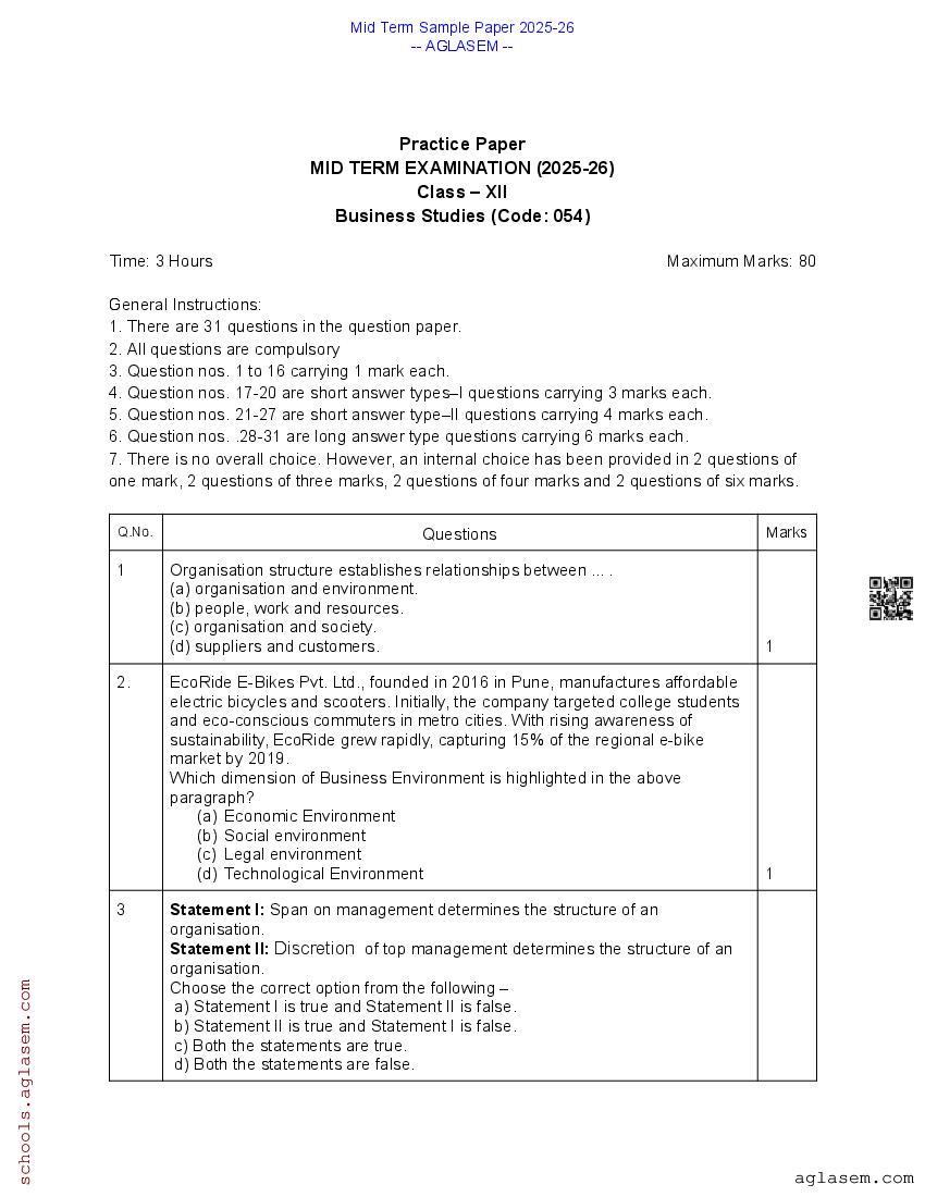 You can view and download Sample Paper for Standard 12 Mid-Term Exam 2025 for Business Studies subject from aglasem.