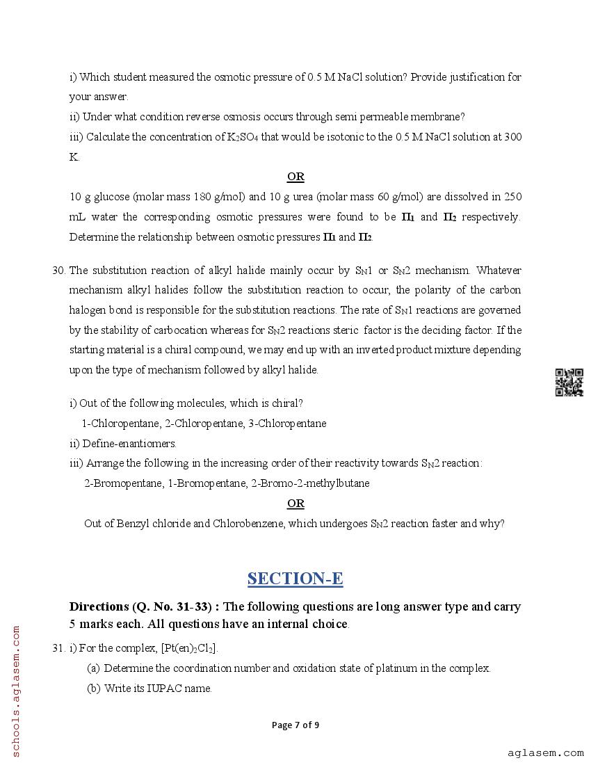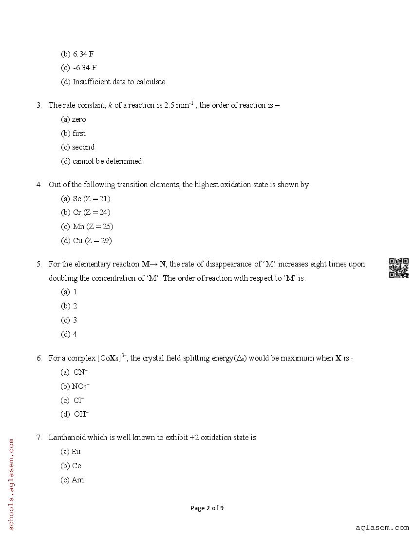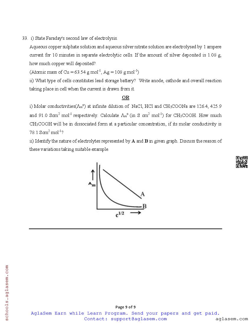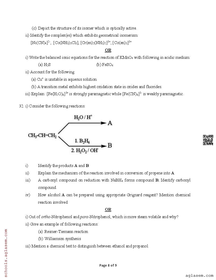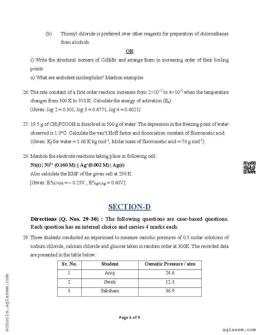 You can view and download Sample Paper for Standard 12 Mid-Term Exam 2025 for Chemistry subject from aglasem.