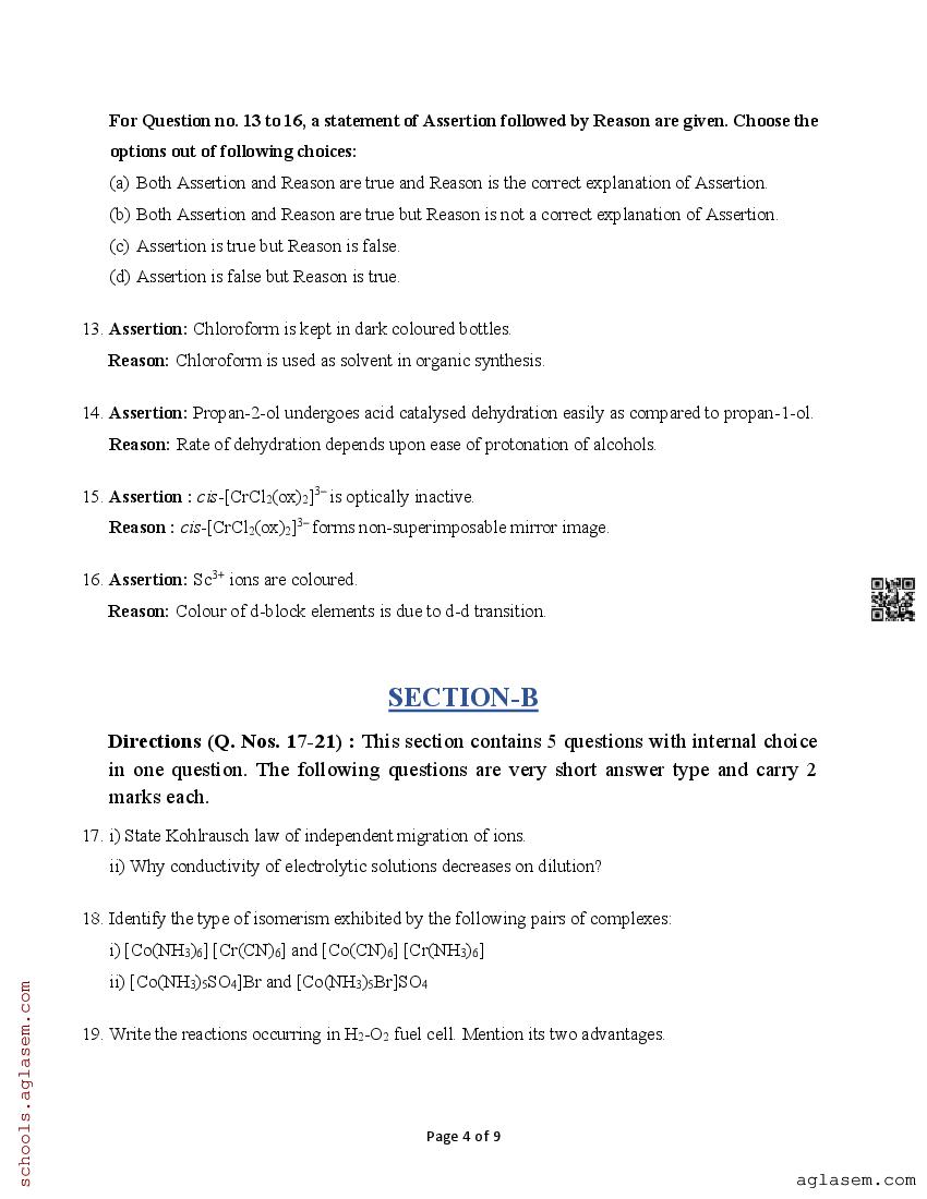 Get the Class 12 Chemistry Mid Term Sample Paper 2025 for your school mid term examination. These Class 12 Chemistry Mid Term Sample Paper 2025 for are developed by experts based on NCERT syllabus. You can now download the Class 12 Chemistry Mid Term Model Question Paper PDF here at aglasem. This class 12 mid term sample paper for Chemistry contains specimen questions from the latest class 12 Chemistry syllabus and gives you a good idea of what to expect in Chemistry paper in periodic tests, unit tests or term 1 examination. Therefore, by solving the Chemistry sample paper, you can aim for better marks in class 12 periodic test.