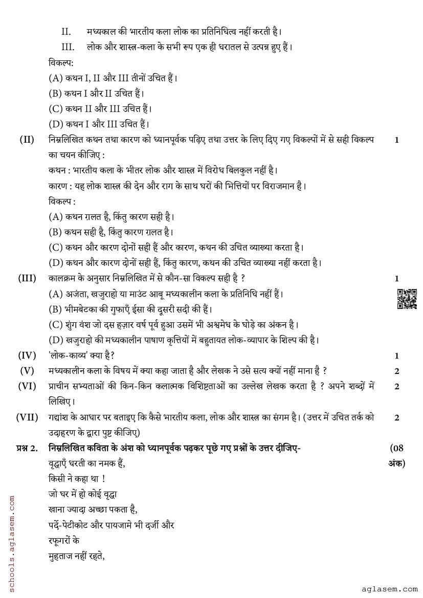 The direct link to download Std 12 Hindi model question paper mid term is given above. While you can easily download the Hindi sample paper from aglasem. In case you want to read the complete mid term specimen paper for Hindi, then that provision is also available on this page. The complete class 12 Hindi mid term sample paper pdf is given below.