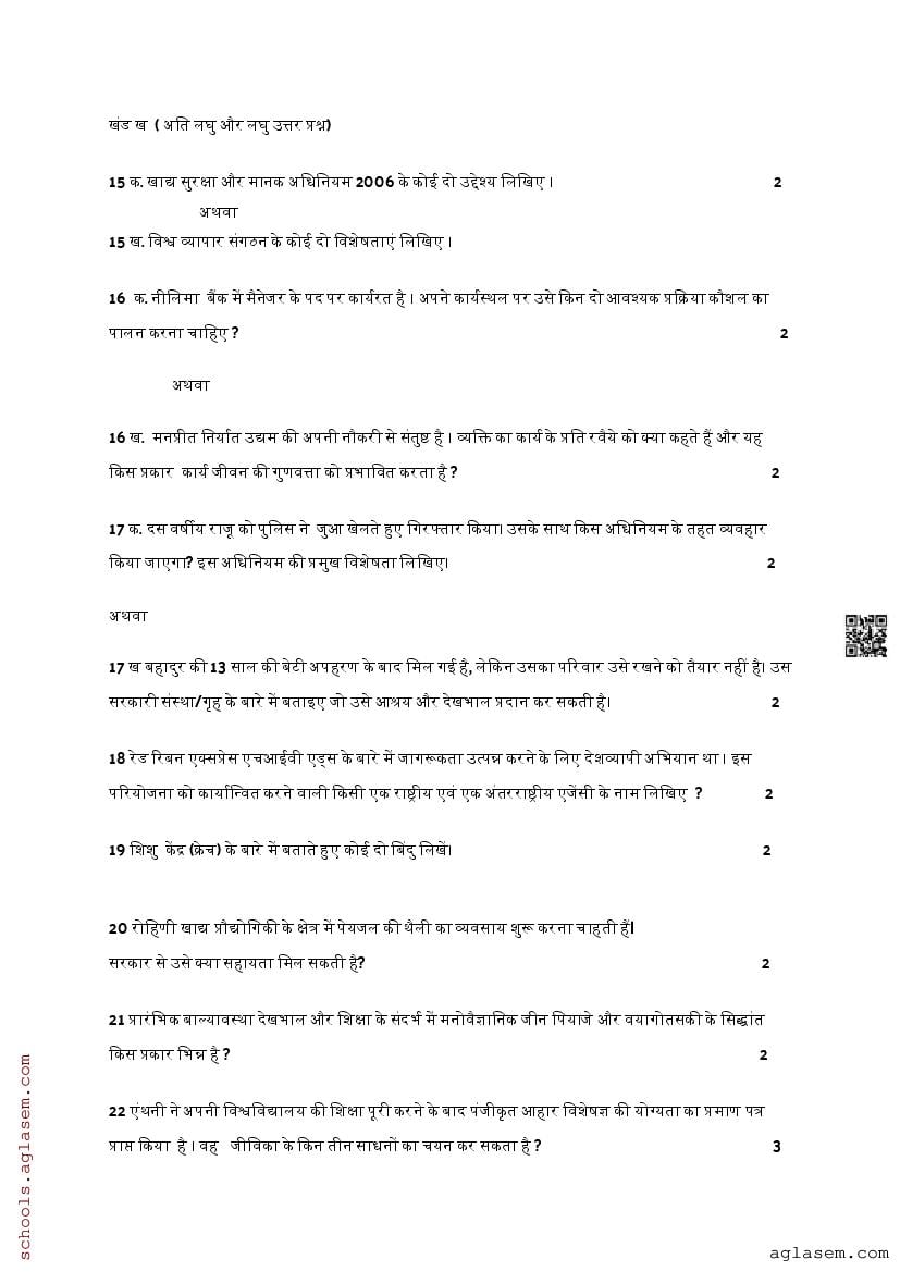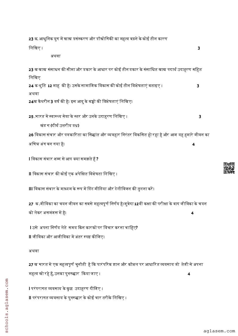 The direct link to download Std 12 Home Science model question paper mid term is given above. While you can easily download the Home Science sample paper from aglasem. In case you want to read the complete mid term specimen paper for Home Science, then that provision is also available on this page. The complete class 12 Home Science mid term sample paper pdf is given below.