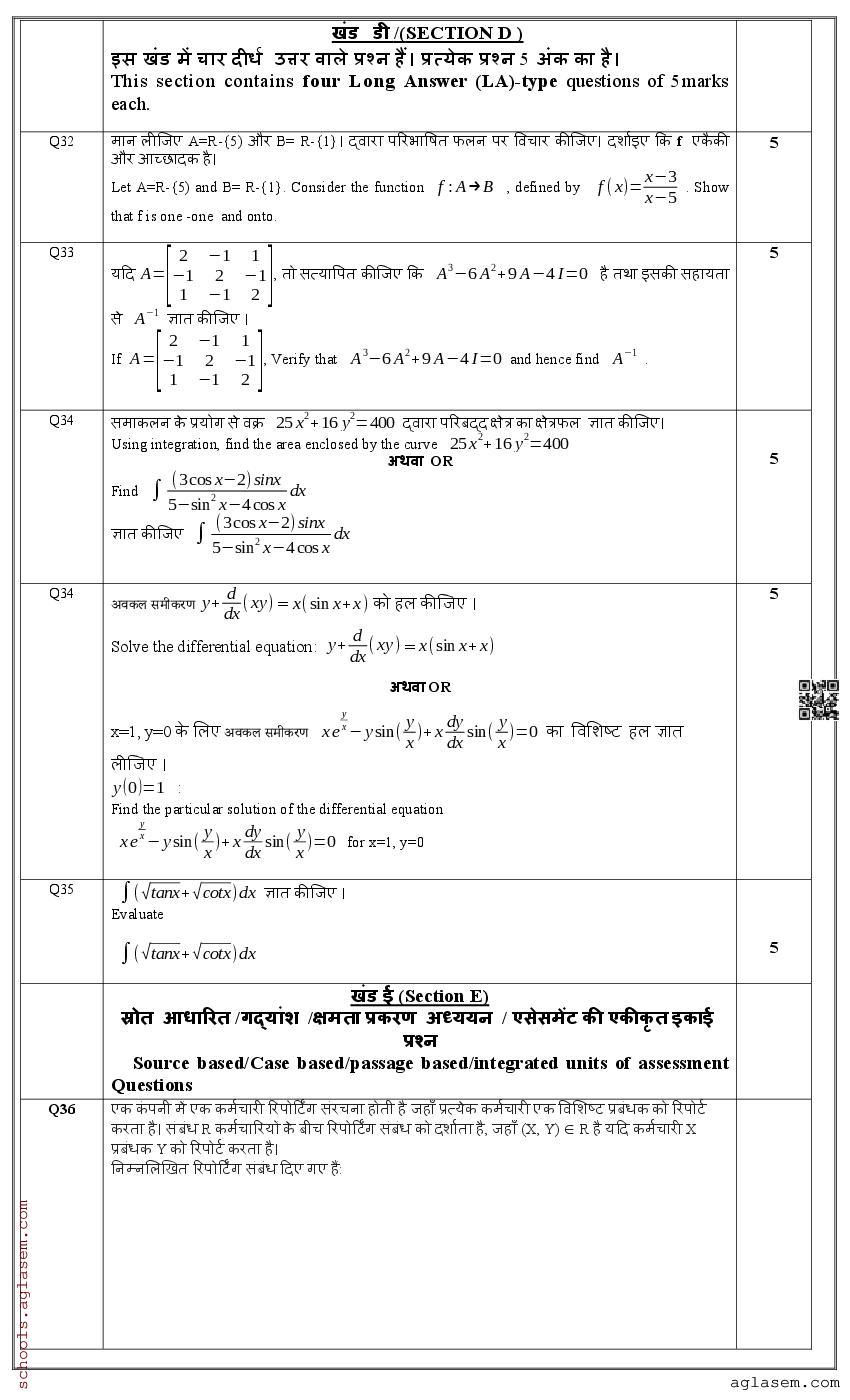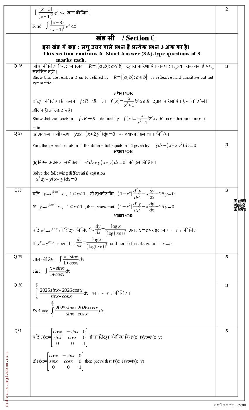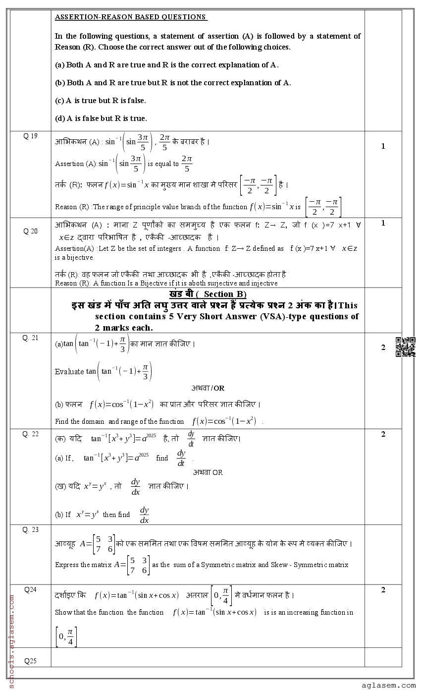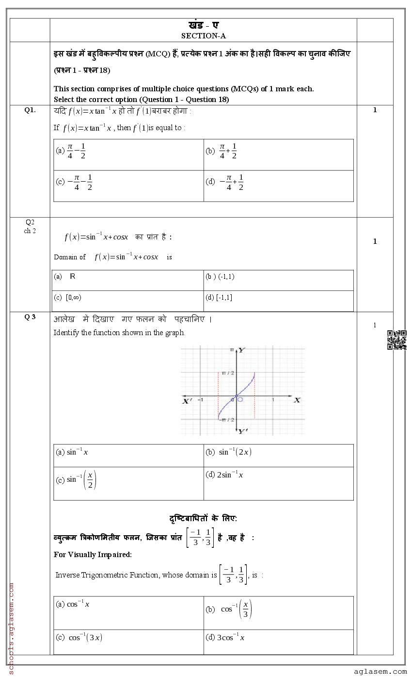 Get the Class 12 Math Mid Term Sample Paper 2025 for your school mid term examination. These Class 12 Math Mid Term Sample Paper 2025 for are developed by experts based on NCERT syllabus. You can now download the Class 12 Math Mid Term Model Question Paper PDF here at aglasem. This class 12 mid term sample paper for Math contains specimen questions from the latest class 12 Math syllabus and gives you a good idea of what to expect in Math paper in periodic tests, unit tests or term 1 examination. Therefore, by solving the Math sample paper, you can aim for better marks in class 12 periodic test.