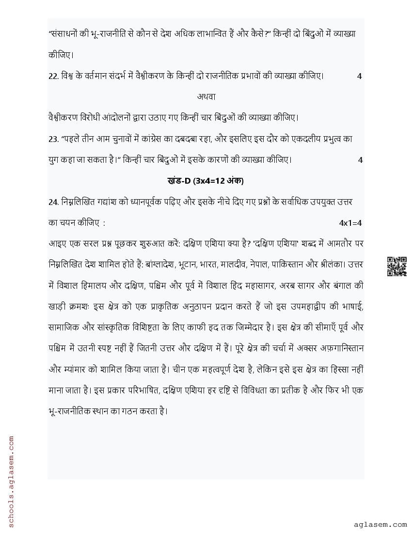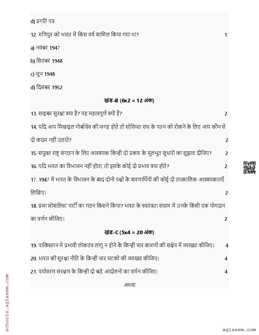 You can view and download Sample Paper for Standard 12 Mid-Term Exam 2025 for Political Science subject from aglasem.