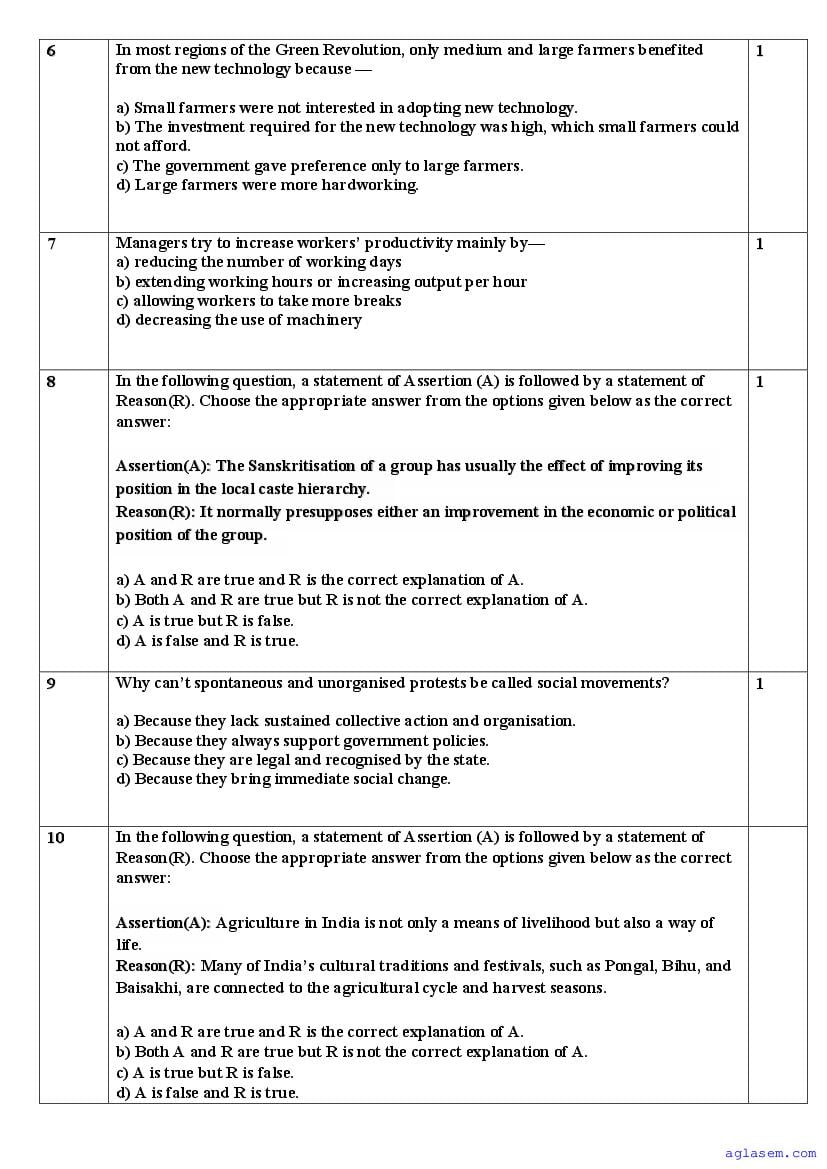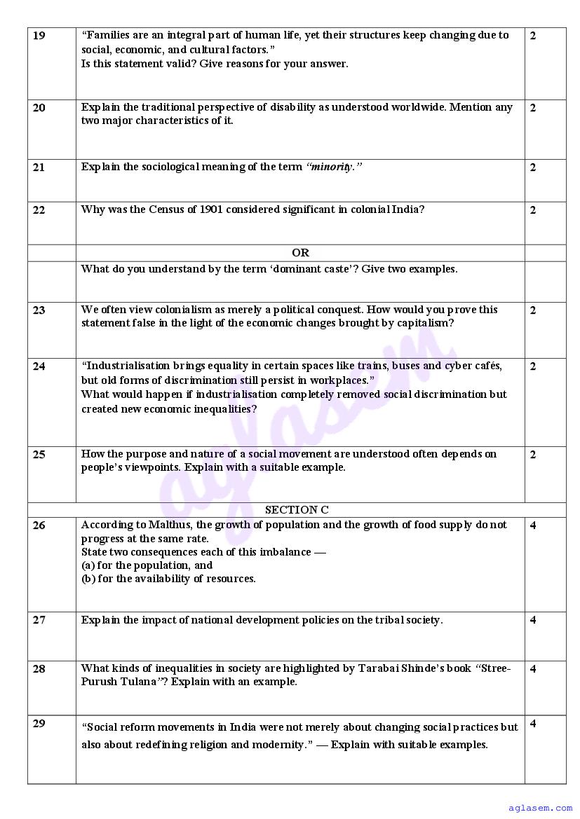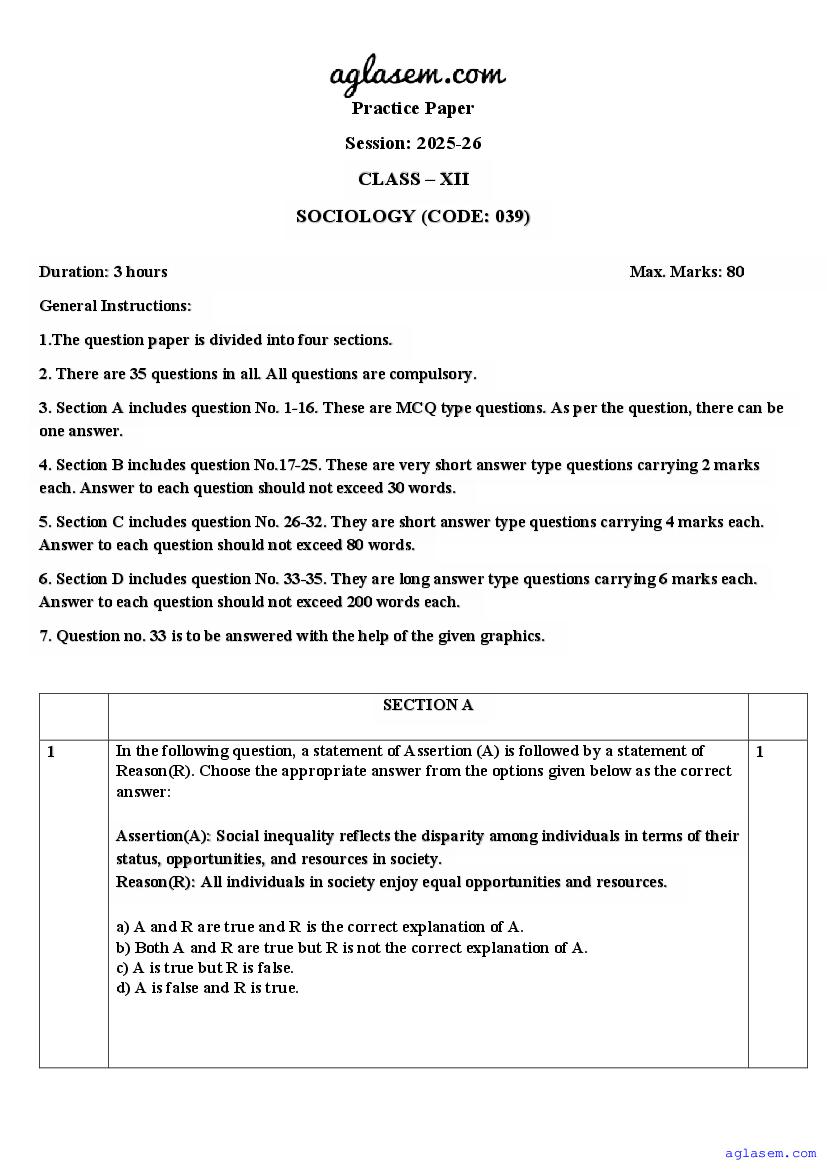 | AglaSem Paper | Class 12 Sample Paper of Sociology |