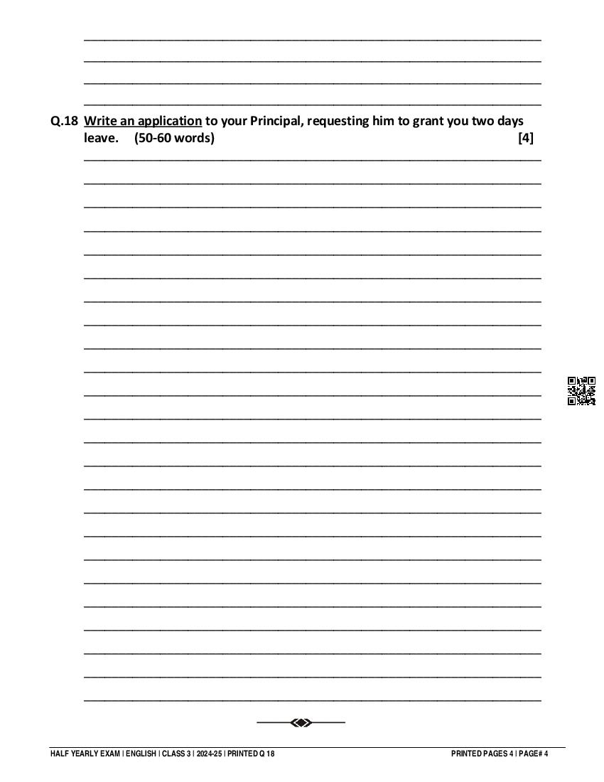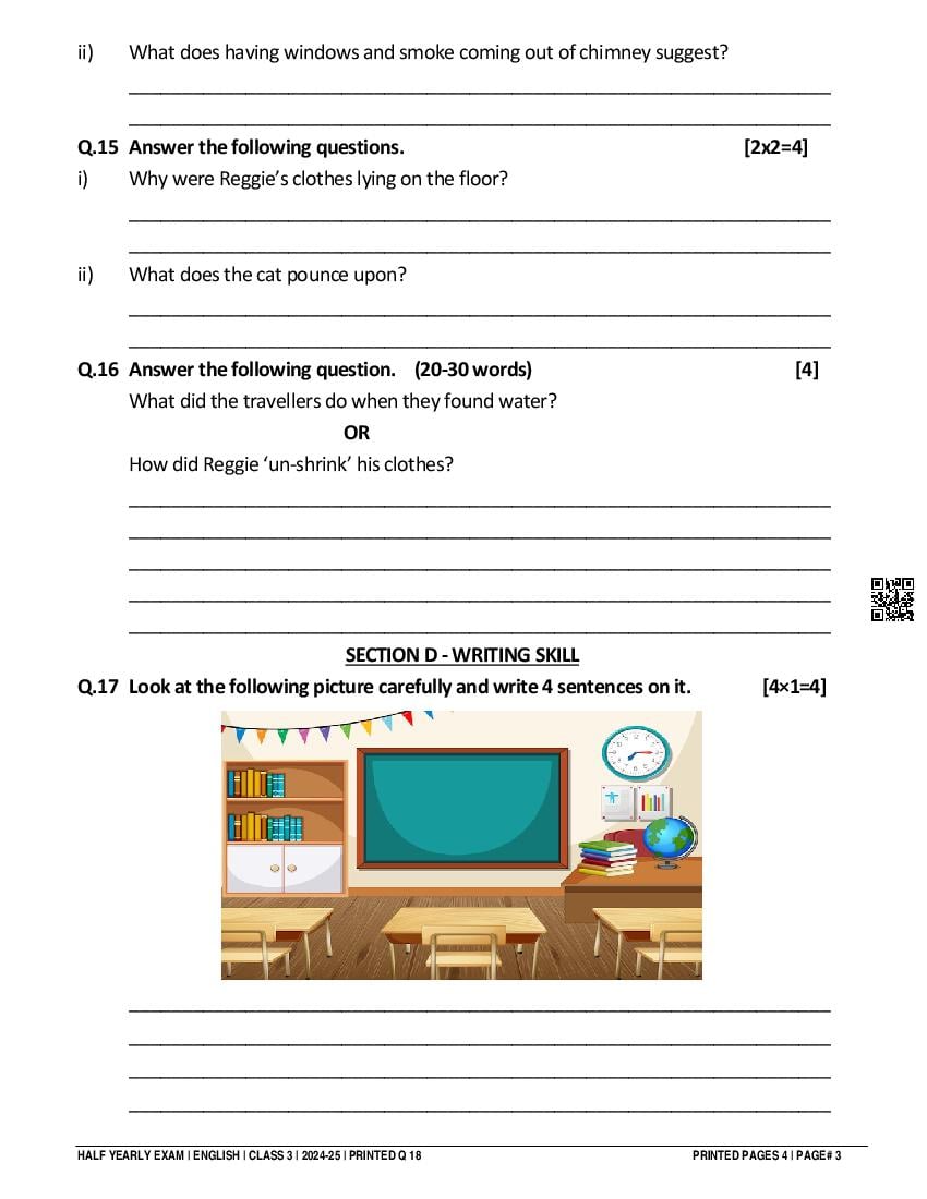 Class 3 Question Paper 2024-25 English (Half Yearly) View Download