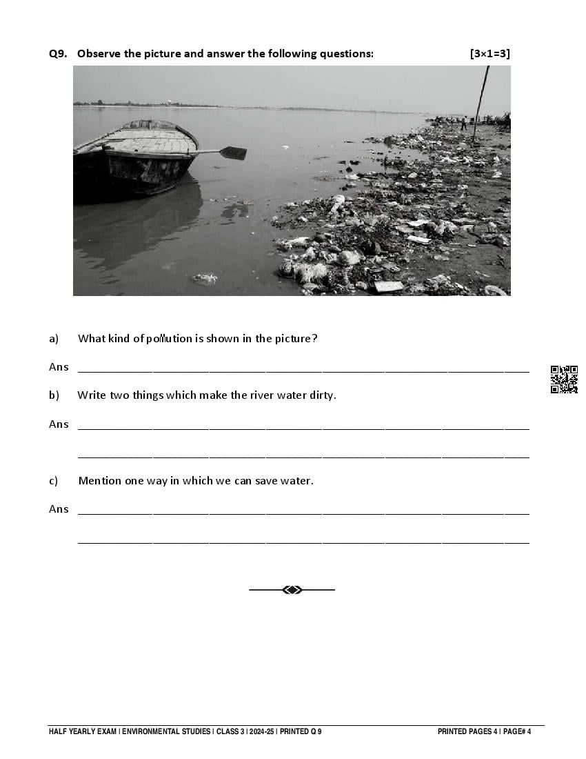 Class 3 Question Paper 2024-25 EVS (Half Yearly) View Download