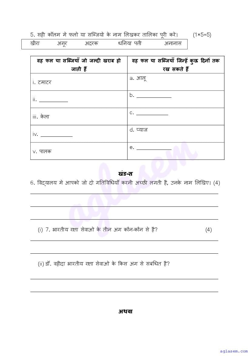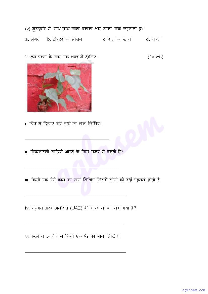 - Class 4 Sample Paper Hindi