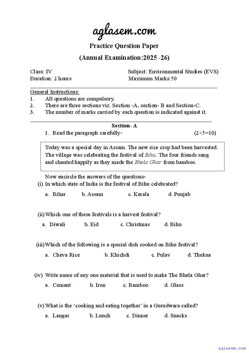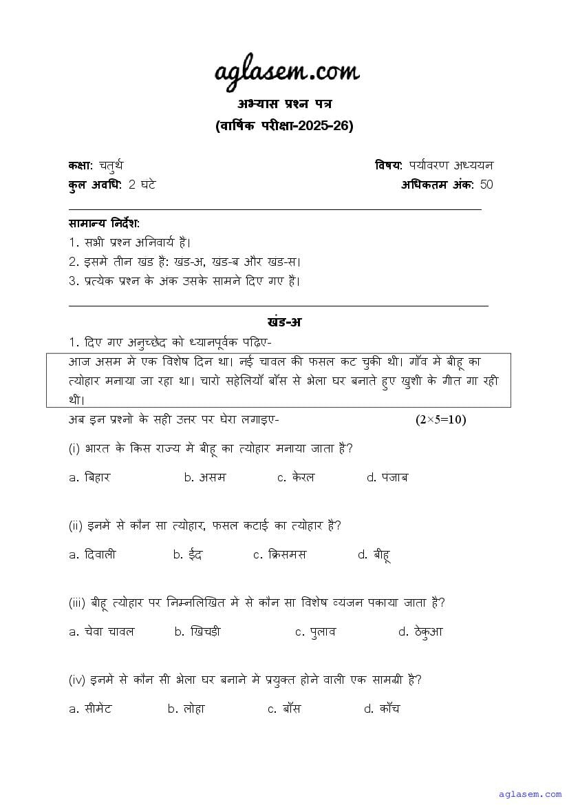 | AglaSem Paper | Class 4 Sample Paper of EVS |