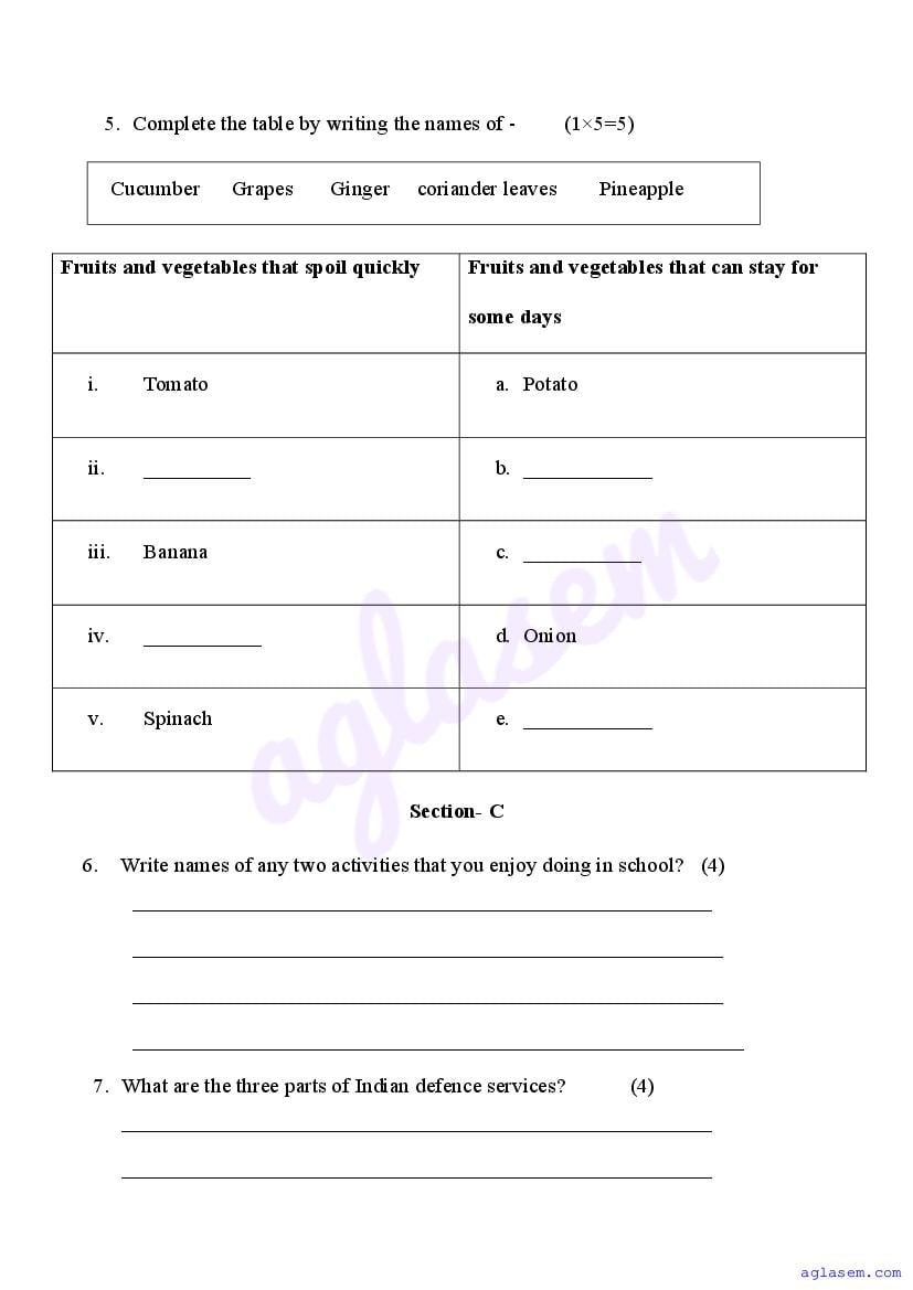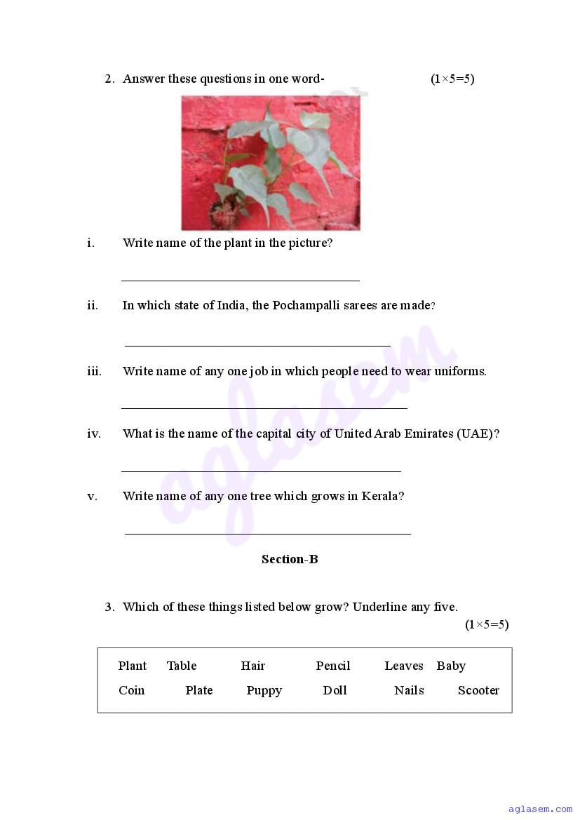 - Class 4 Sample Paper EVS