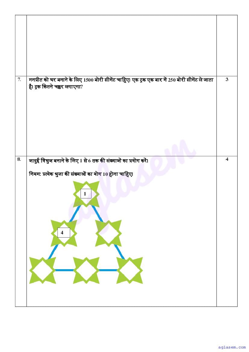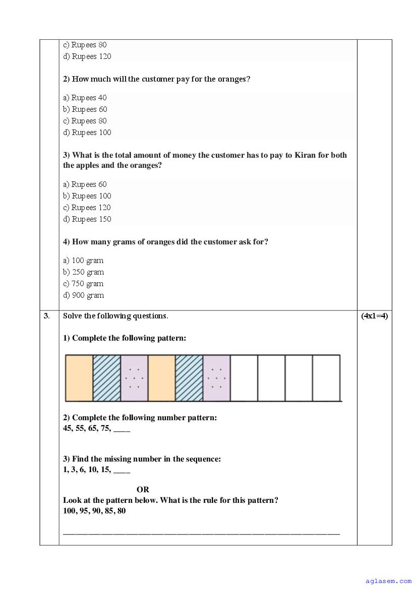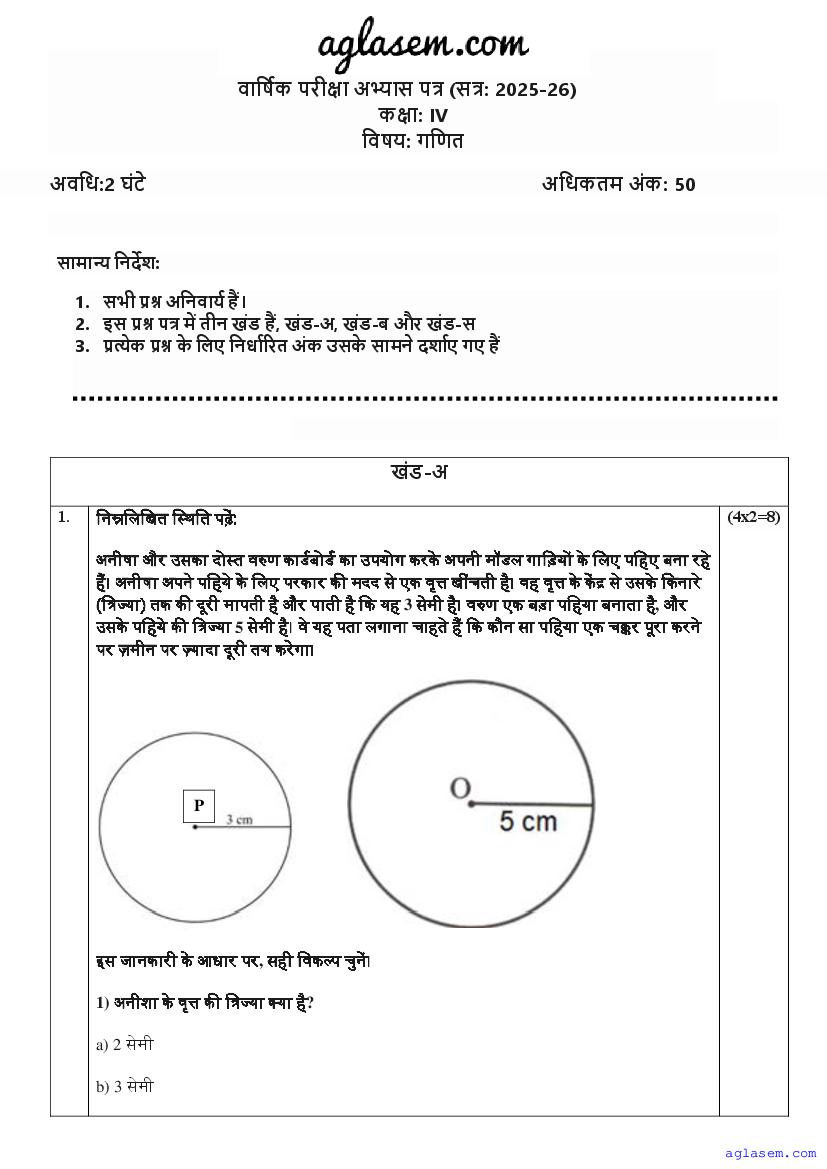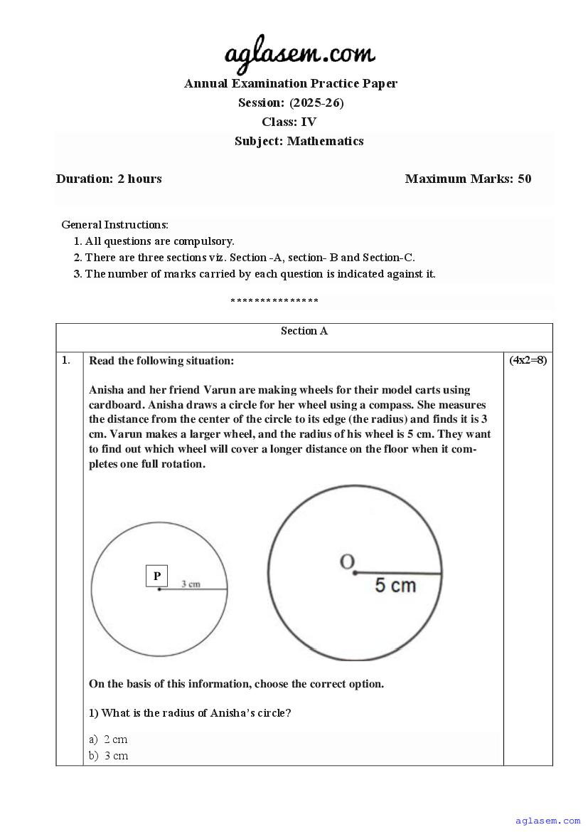 | AglaSem Paper | Class 4 Sample Paper of Maths |