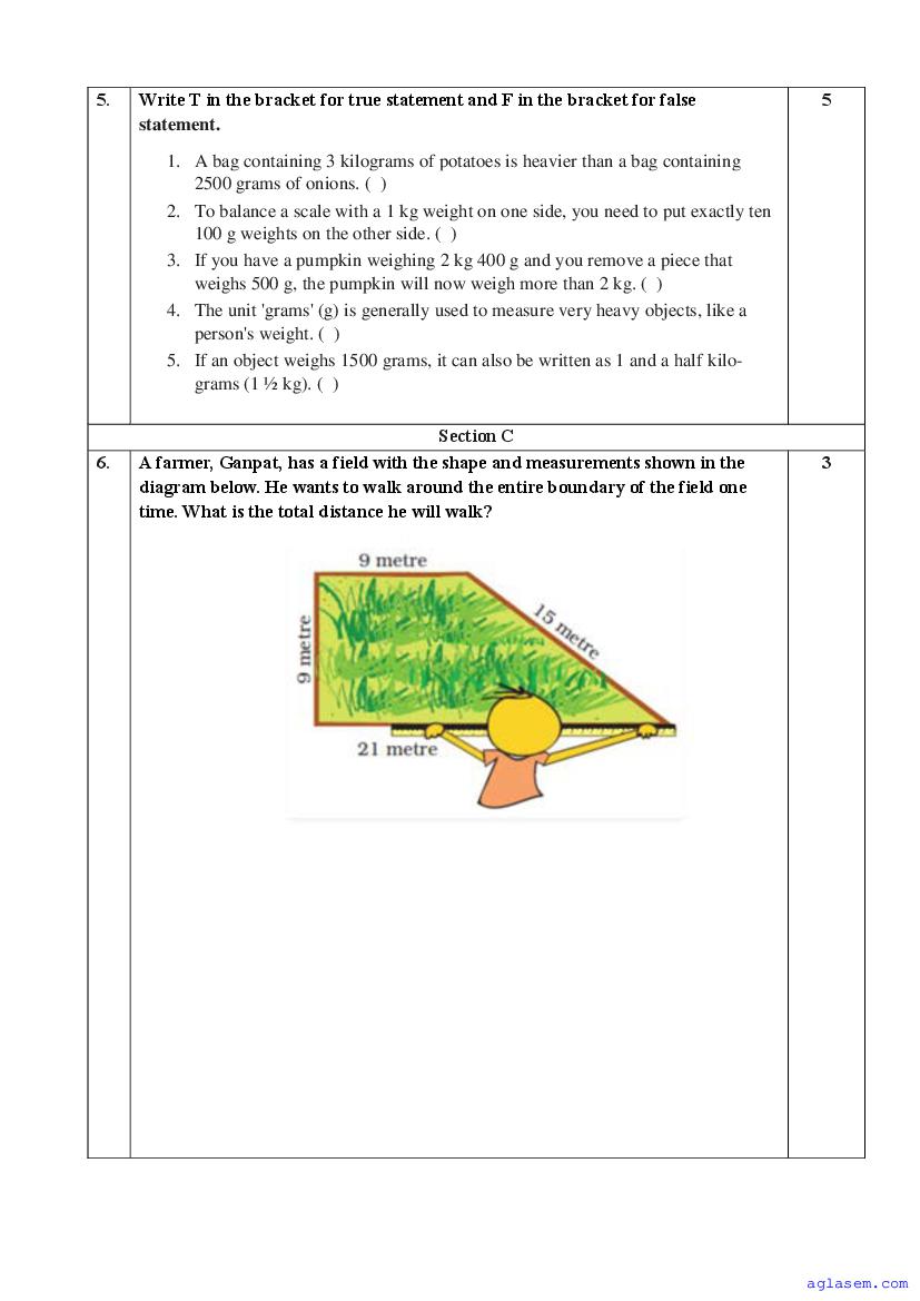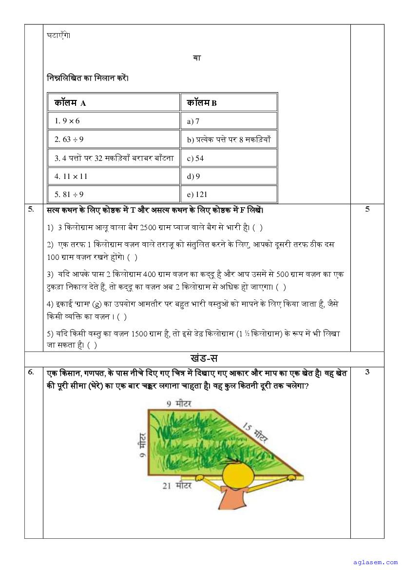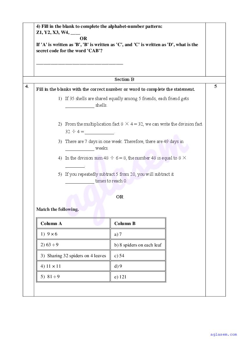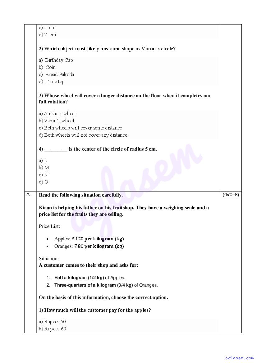 | AglaSem Paper | Class 4 Sample Paper of Maths |