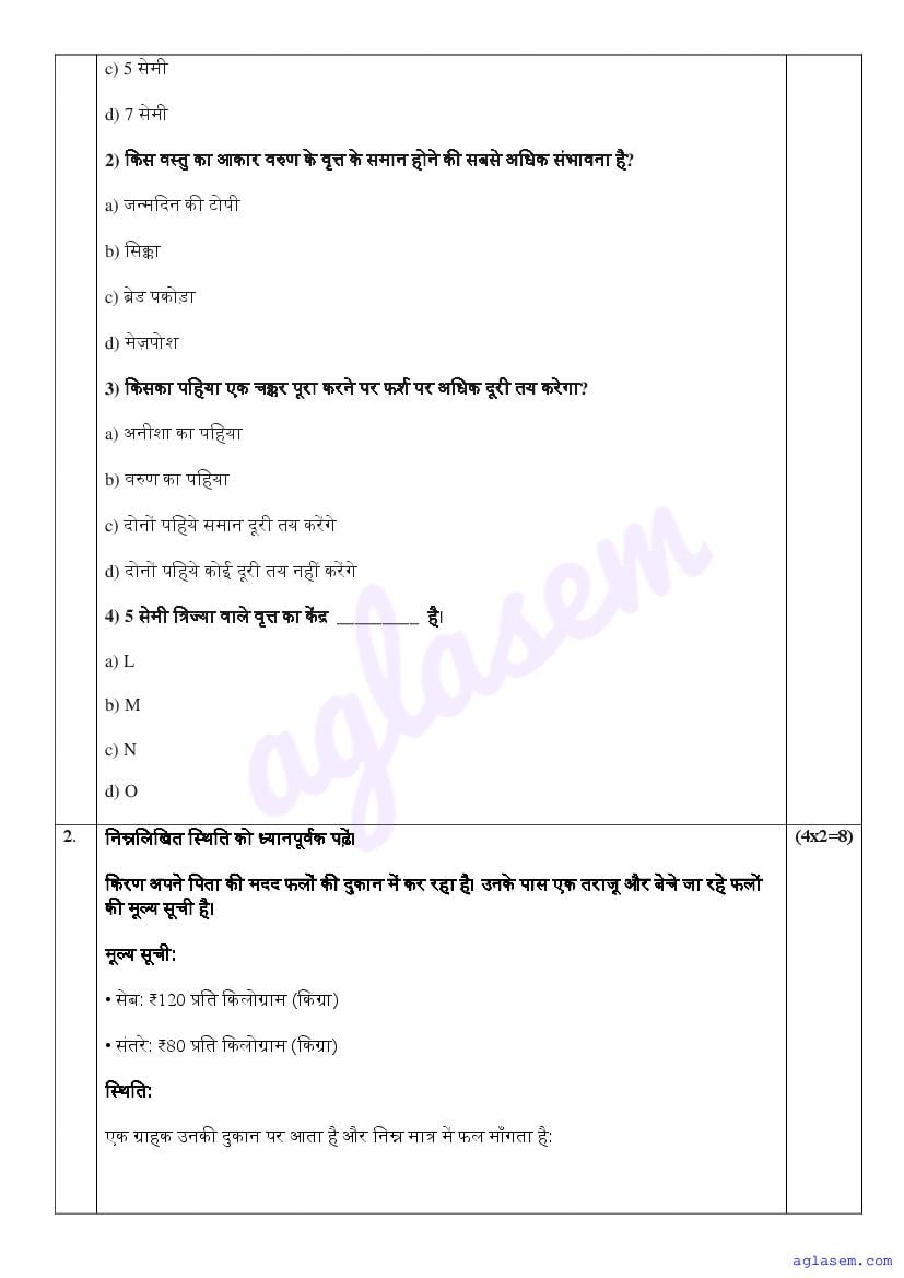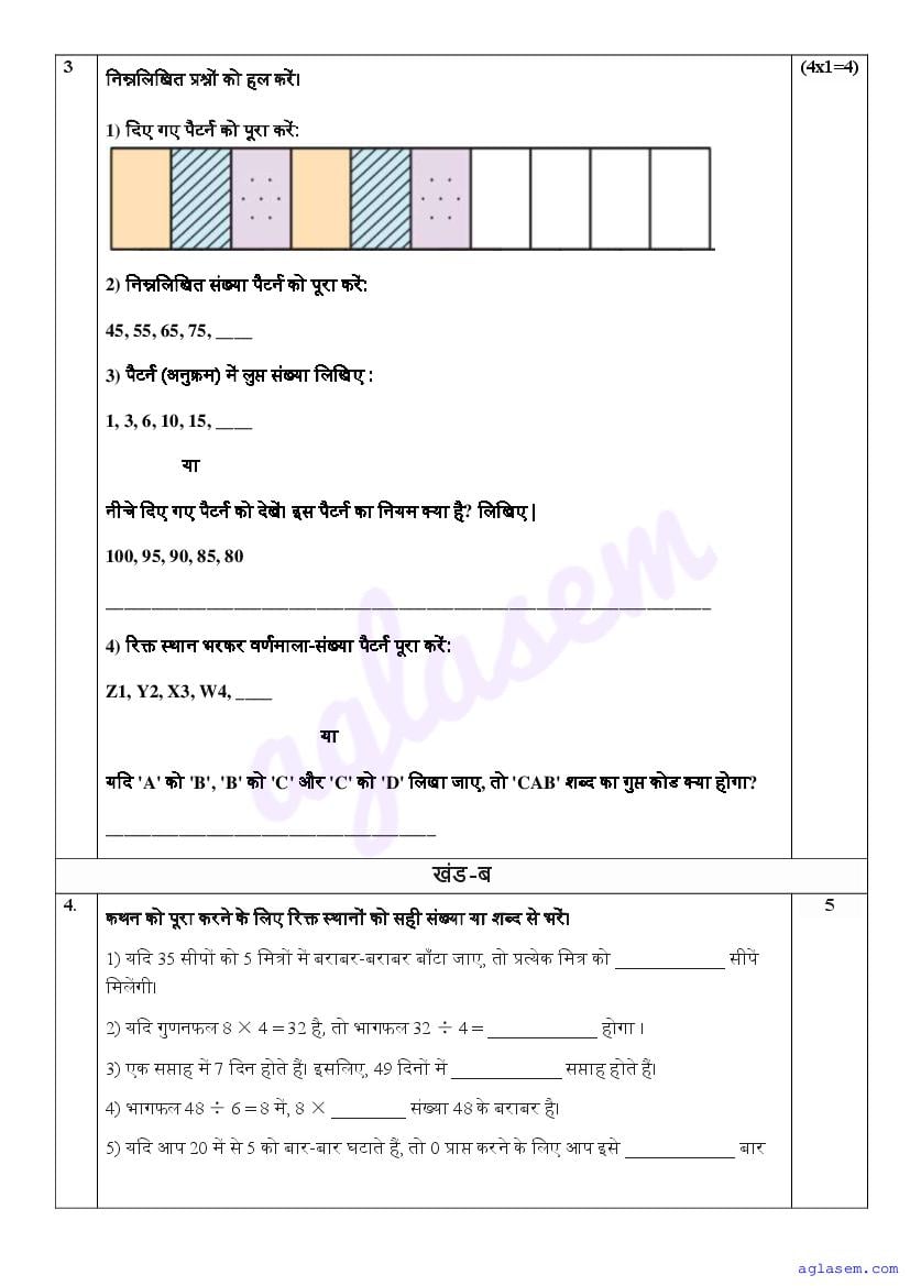 - Class 4 Sample Paper Hindi