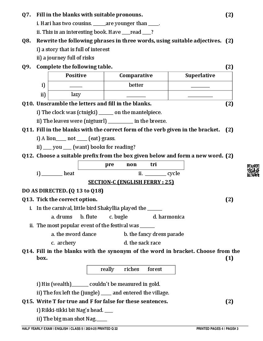 If you have any queries about Class 5 English Half Yearly Question Paper 2025, then please ask in comments below. And if you found this study material helpful, then please share with your friends!