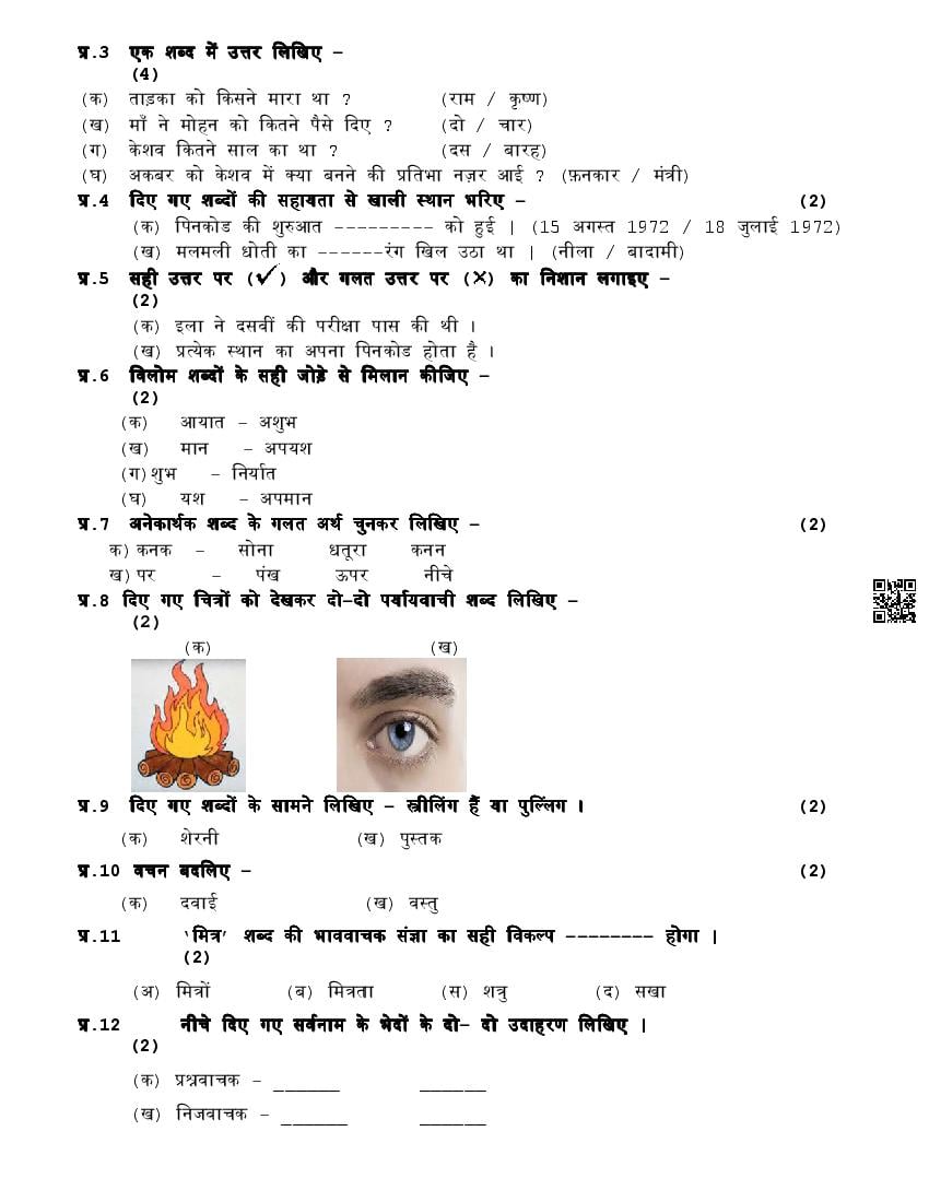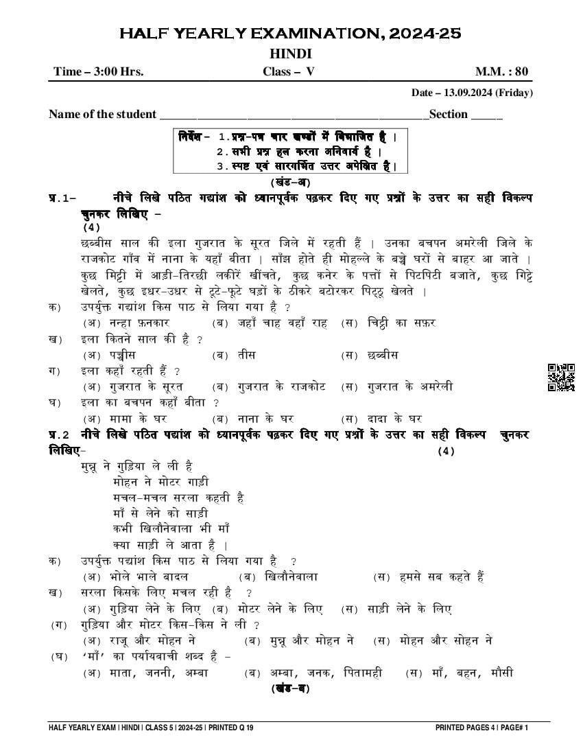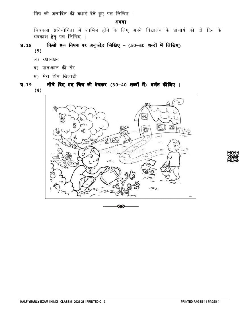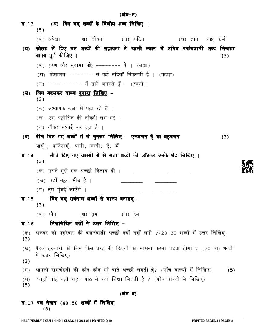 | Paper Here | 5th Half Yearly Question Paper Hindi |