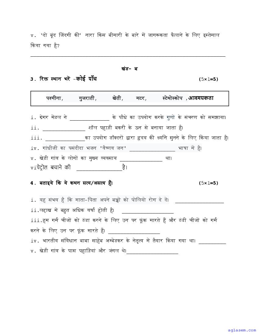 - Class 5 Sample Paper Hindi