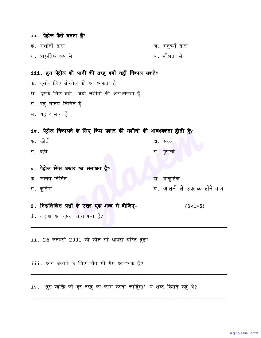 - Class 5 Sample Paper EVS
