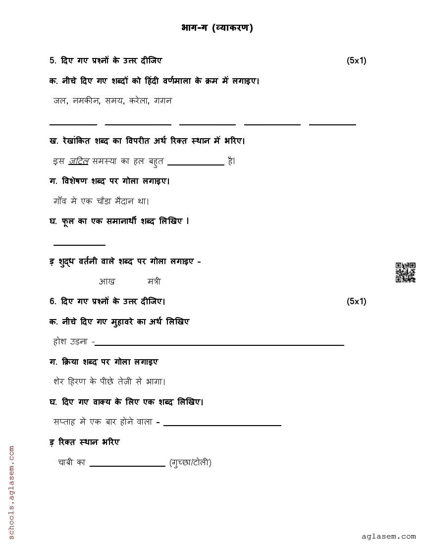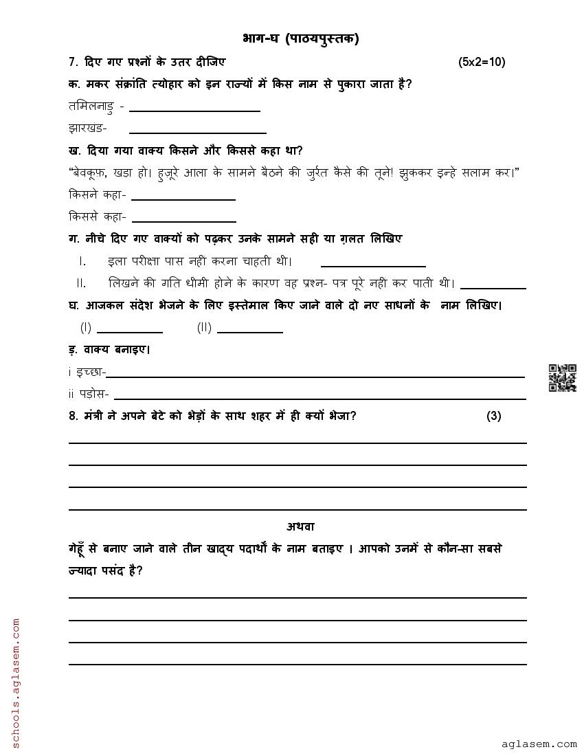 The direct link to download Std 5 Hindi model question paper mid term is given above. While you can easily download the Hindi sample paper from aglasem. In case you want to read the complete mid term specimen paper for Hindi, then that provision is also available on this page. The complete class 5 Hindi mid term sample paper pdf is given below.