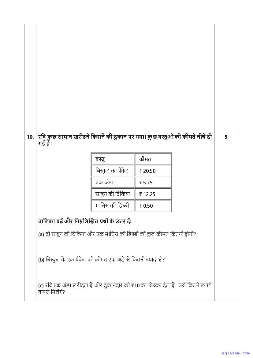 | AglaSem Paper | Class 5 Sample Paper of Maths |