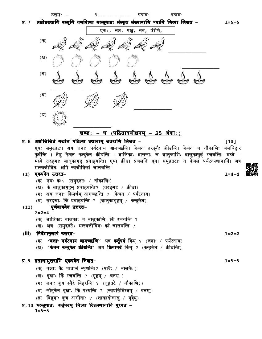 We have provided you the direct link to download Sanskrit question paper above. However if you want to read the 6th Sanskrit half yearly exam question paper here itself, that is also possible. The complete paper is as follows.