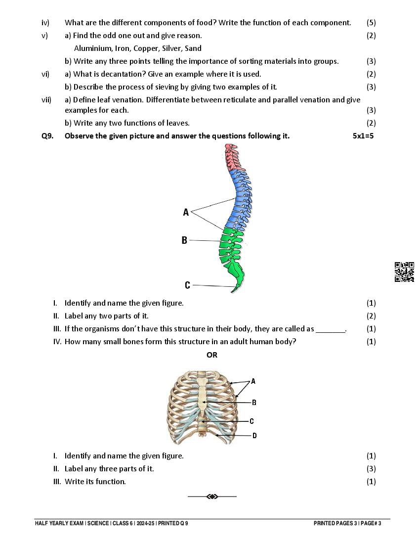 Class 6 Question Paper 2024-25 Science (Half Yearly) View Download