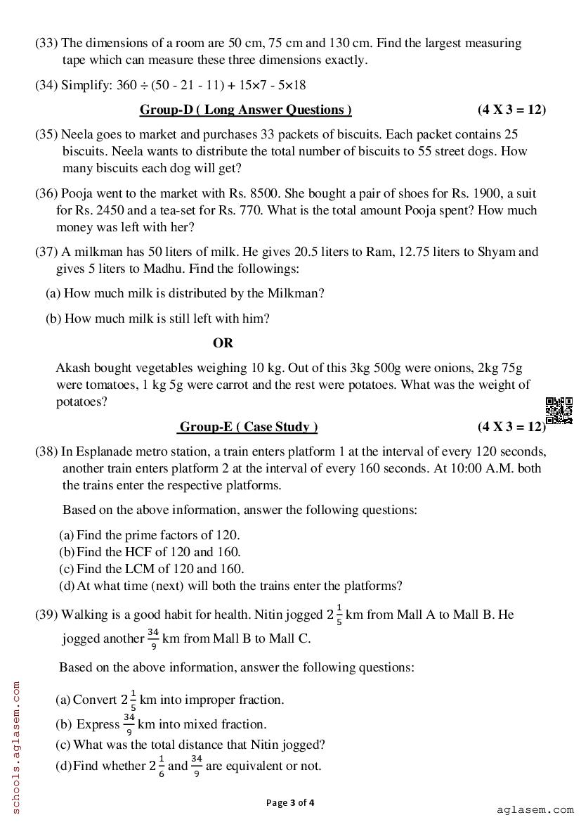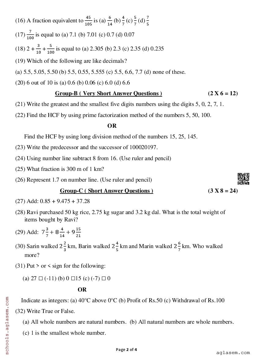 You can easily download the Class 6 Maths Mid Term Question Paper PDF from aglasem. The paper is prepared based on the latest syllabus and gives a clear idea of the type of questions asked in the exam. The mid term exam question paper for 6th std for Maths subject is as follows.