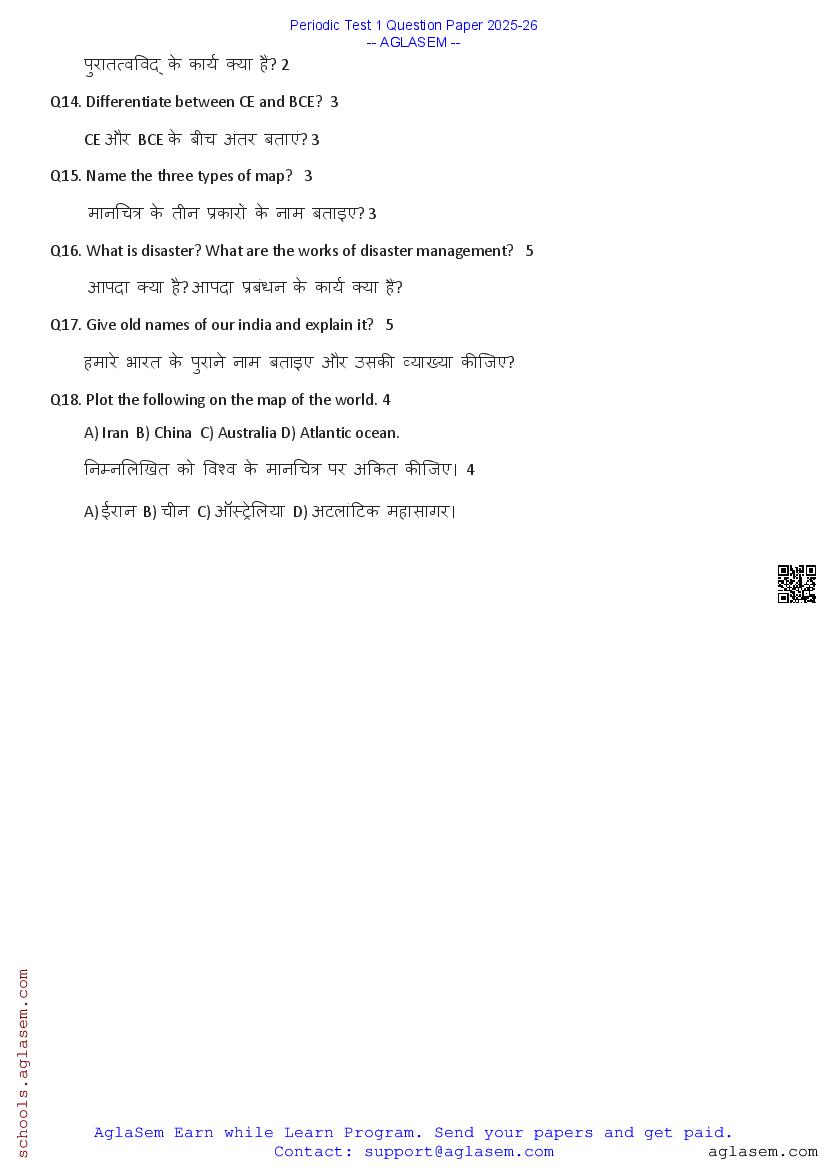 Class 6 PT 1 Question Paper Social Science 2025-26