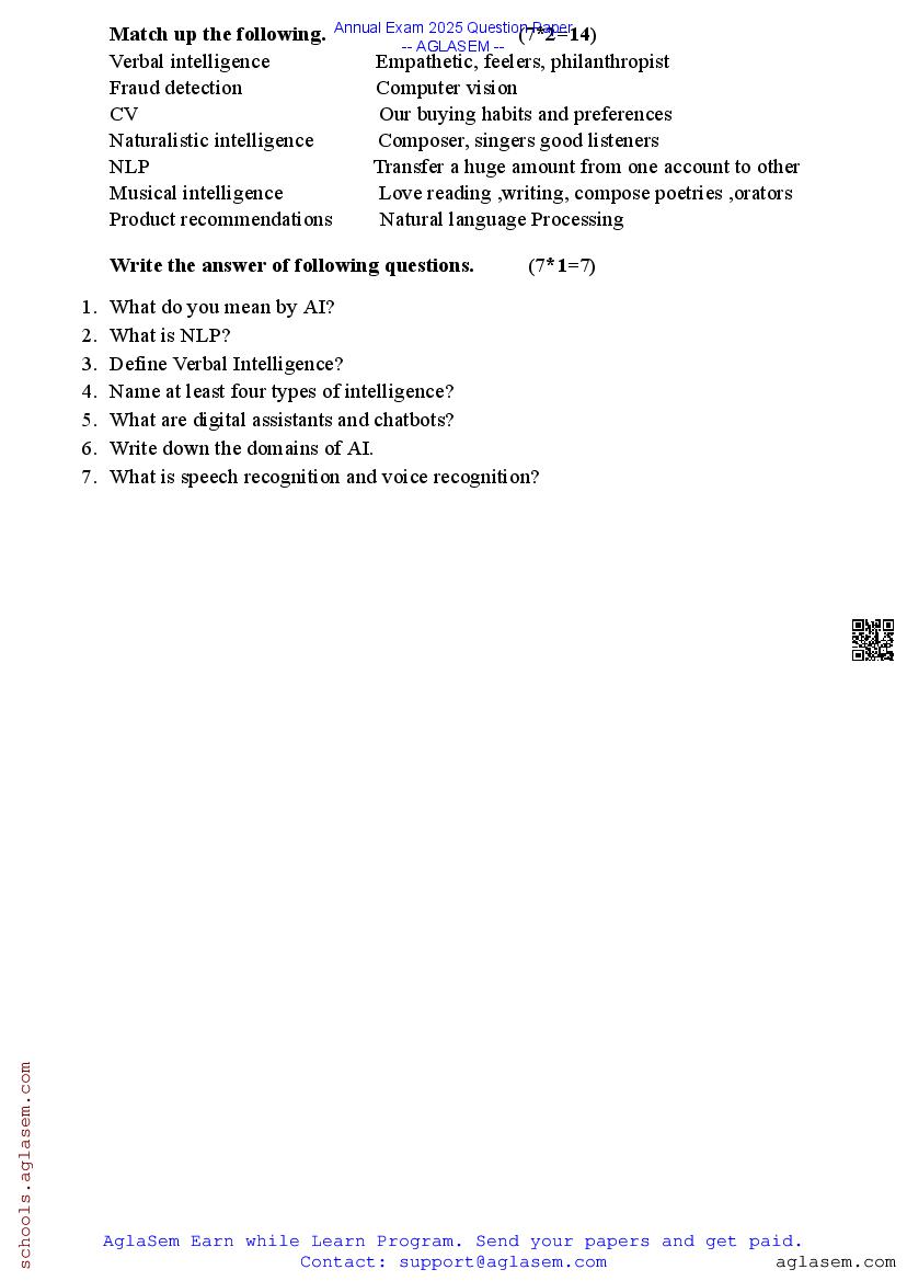 If you have any queries about Class 6 Artificial Intelligence Annual Exam Question Paper 2025, then please ask in comments below. And if you found this study material helpful, then please share with your friends!
