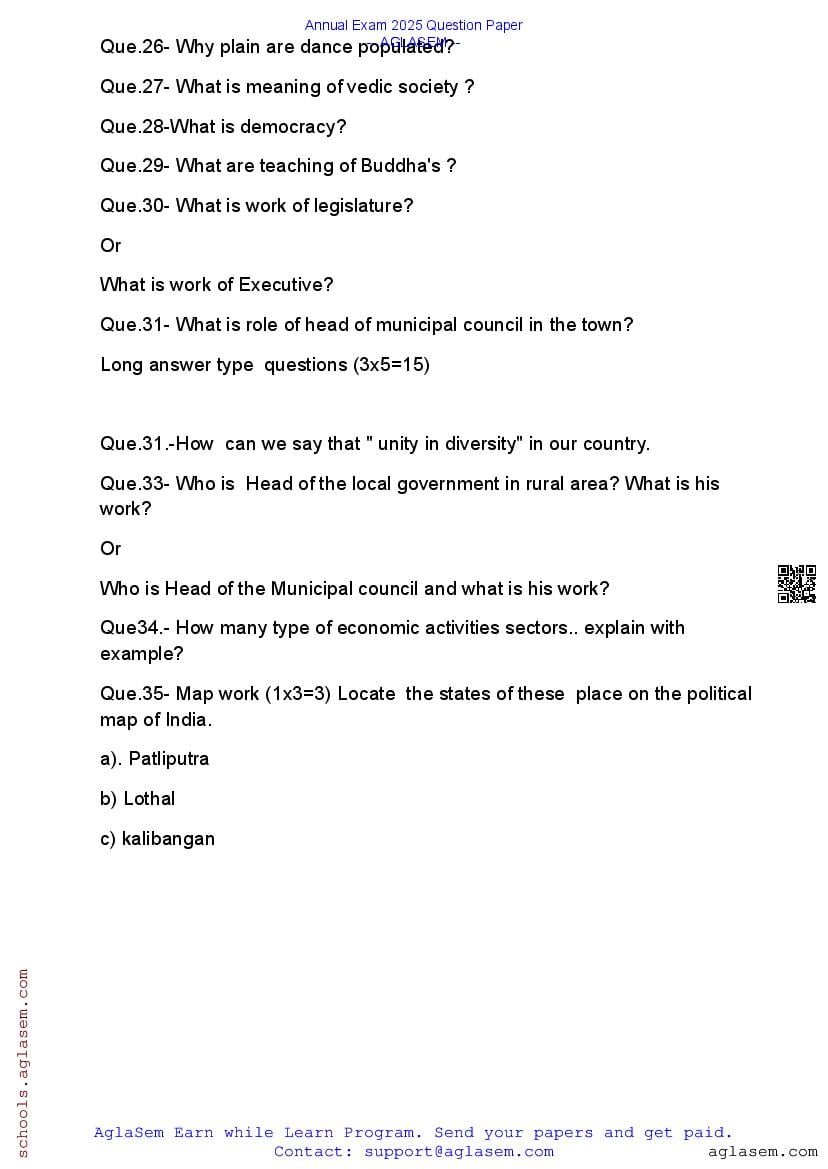 If you have any queries about Class 6 Social Science Annual Exam Question Paper 2025, then please ask in comments below. And if you found this study material helpful, then please share with your friends!