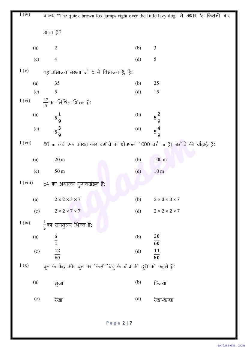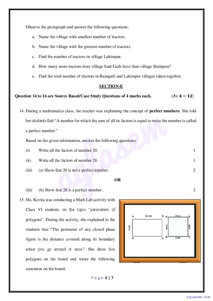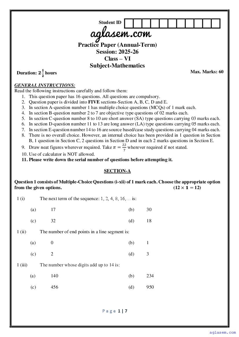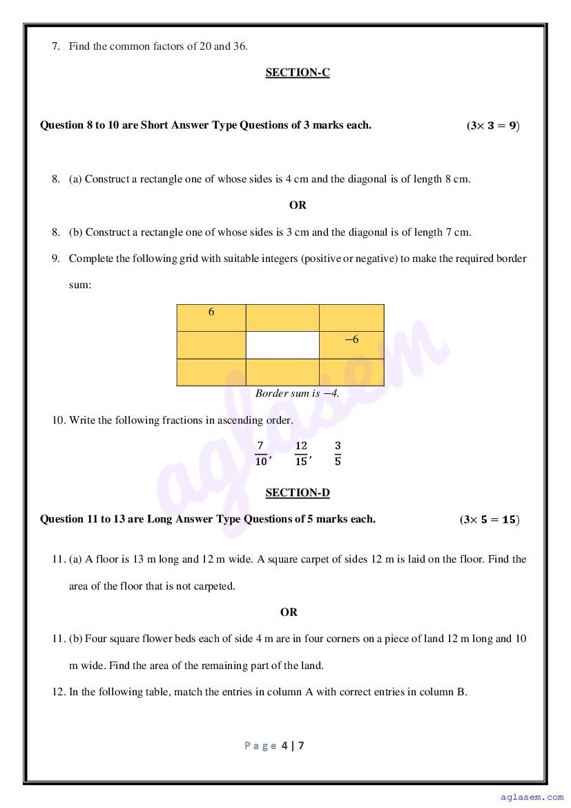 | AglaSem Paper | Class 6 Sample Paper of Maths |