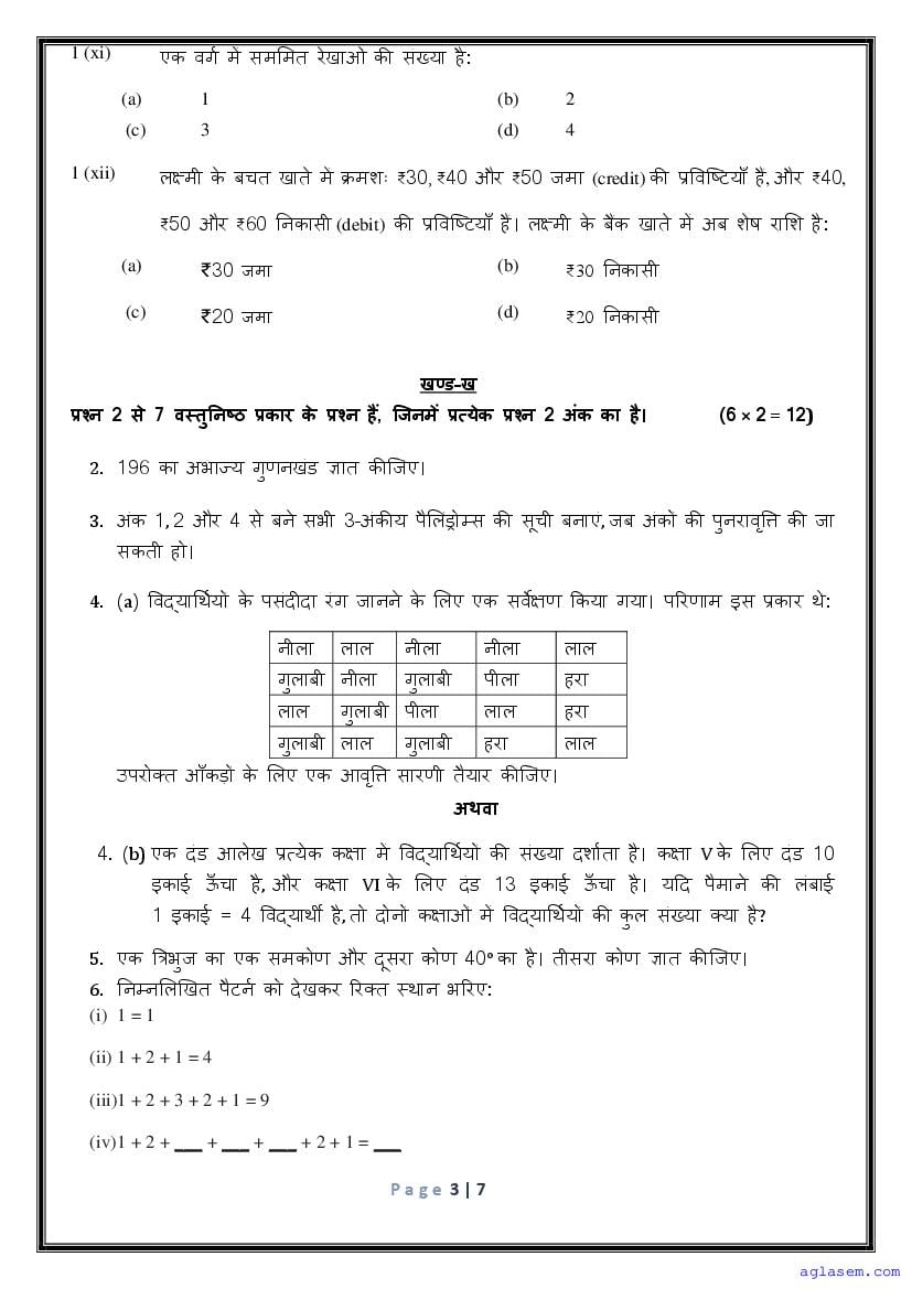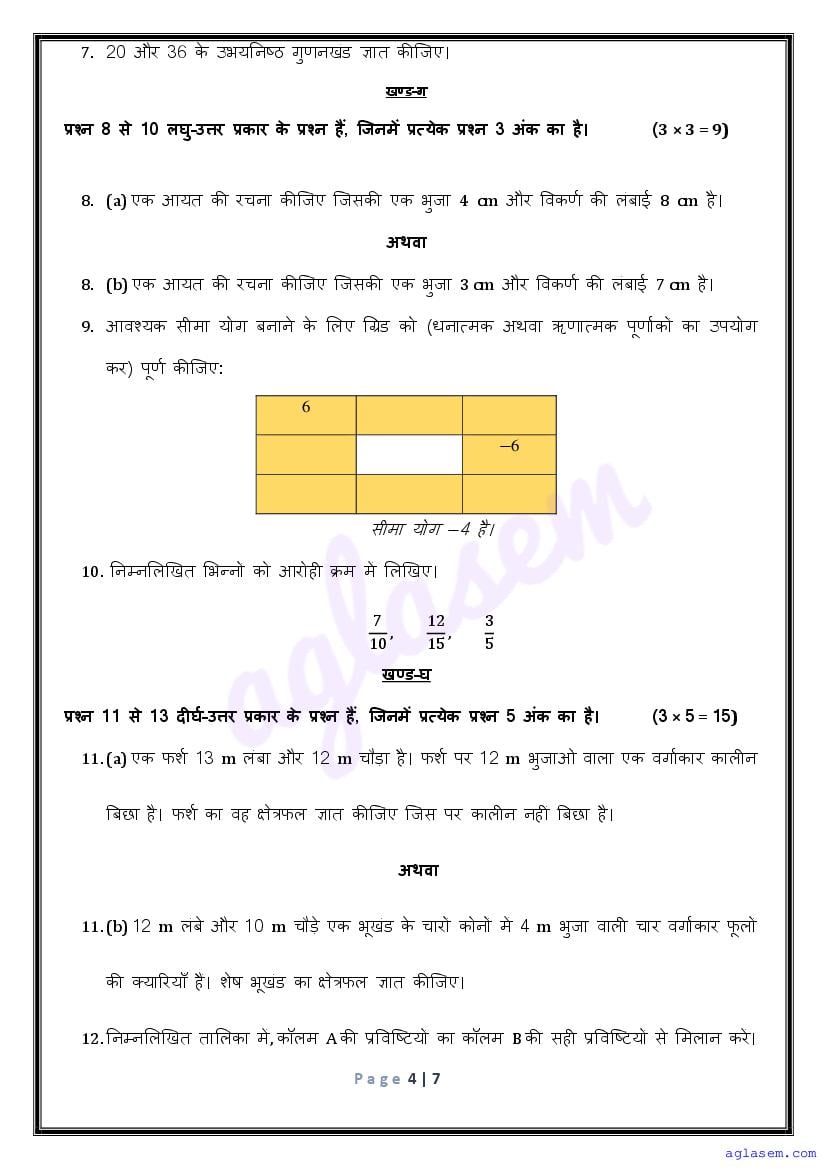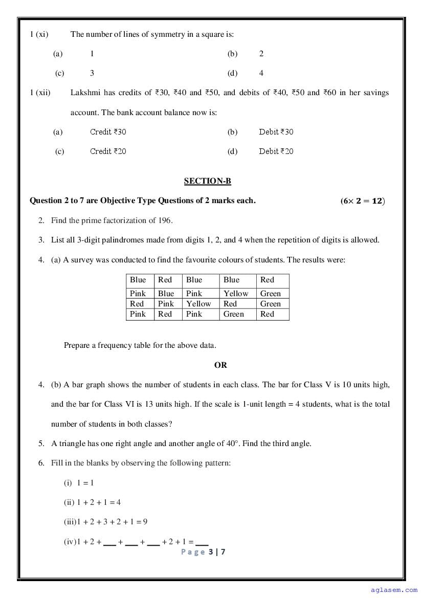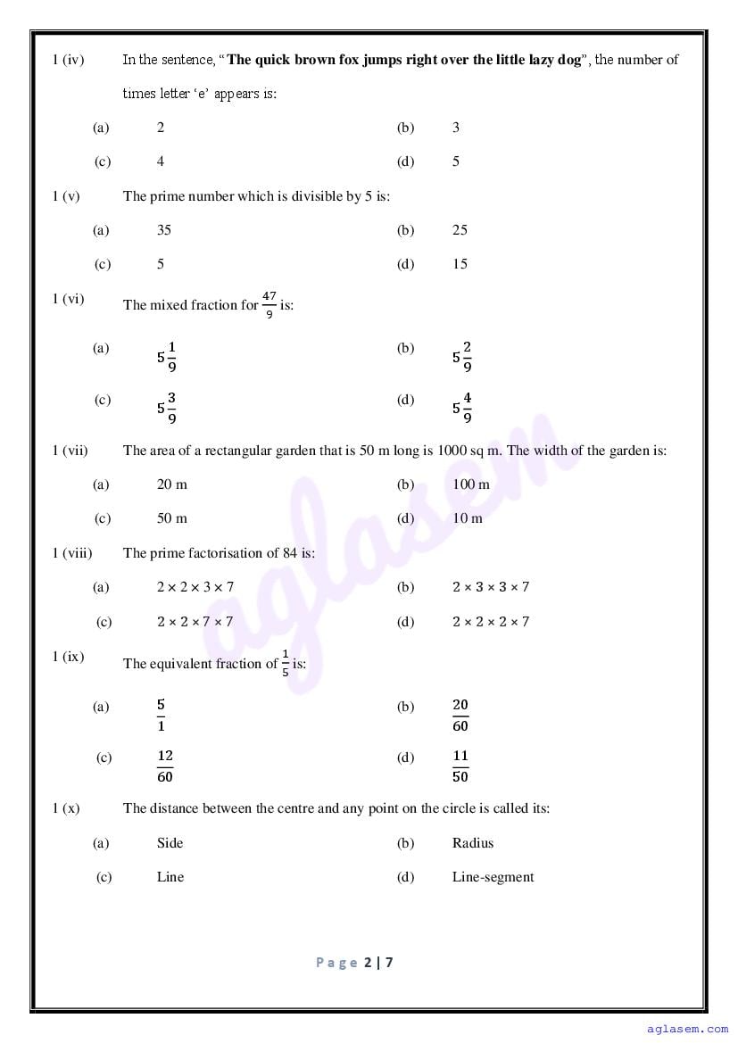 | AglaSem Paper | Class 6 Sample Paper of Maths |