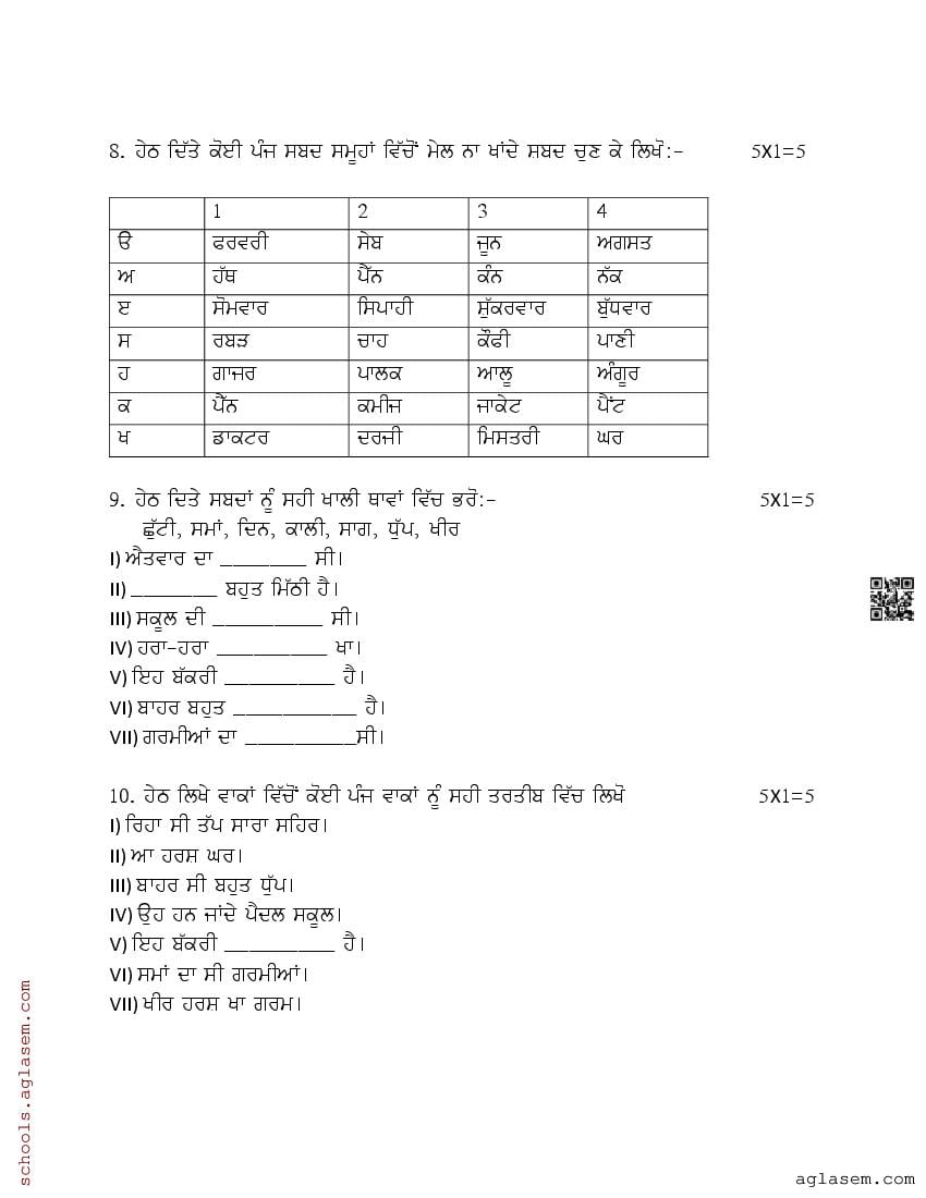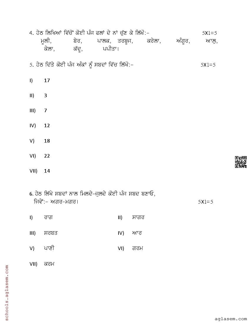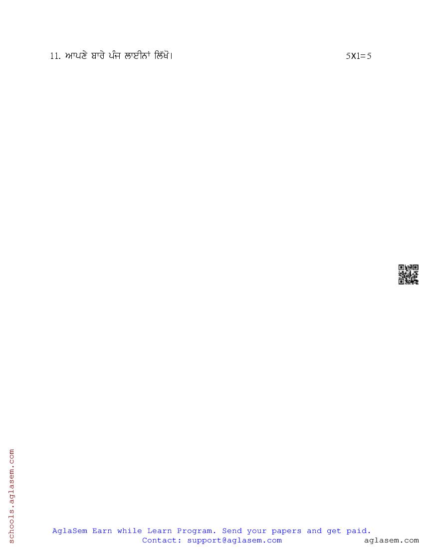 Class 6 Punjabi Mid Term Sample Paper 2025