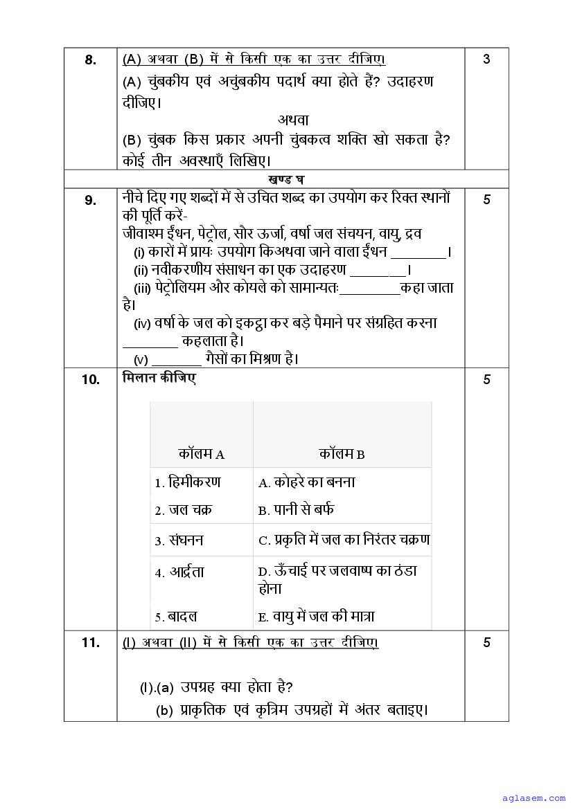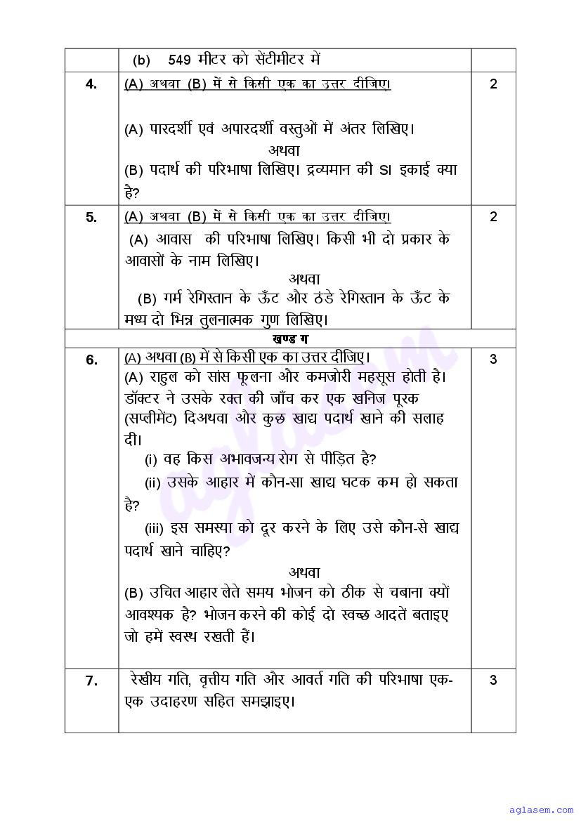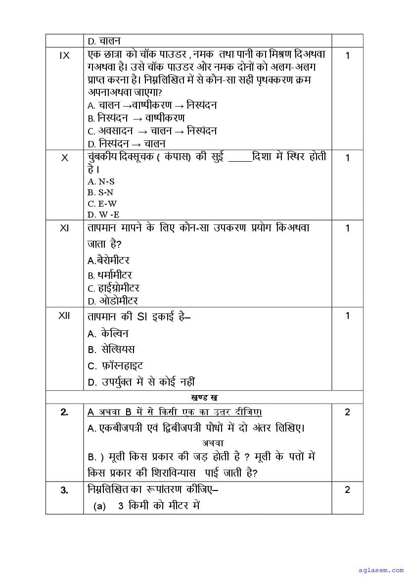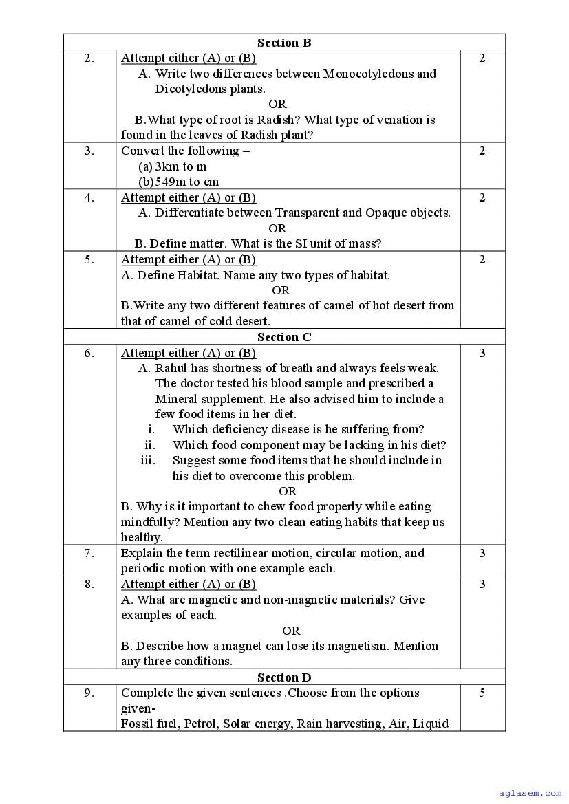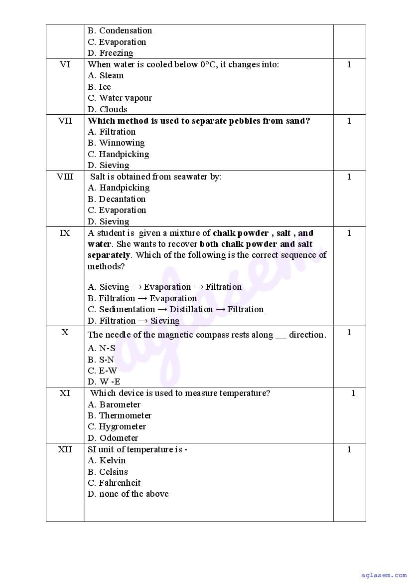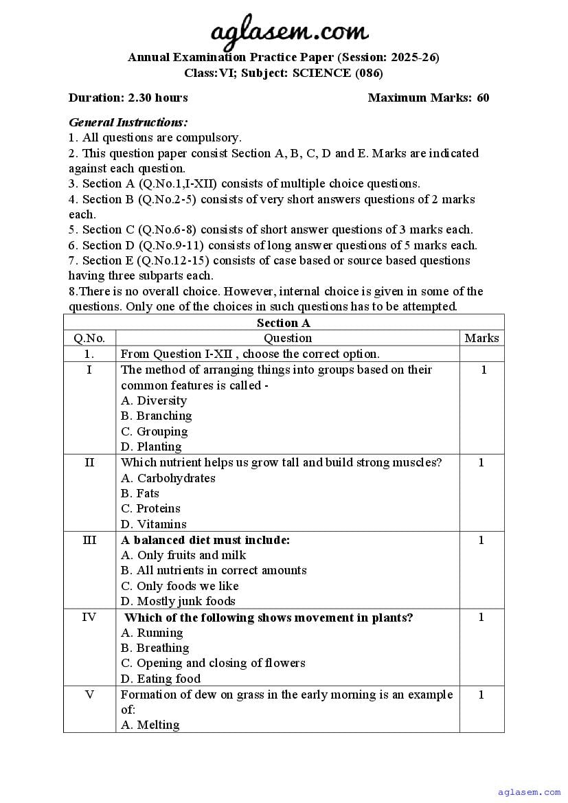 | AglaSem Paper | Class 6 Sample Paper of Science |