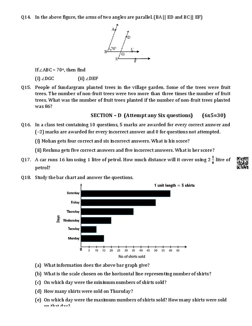 We have provided you the direct link to download Maths question paper above. However if you want to read the 7th Maths half yearly exam question paper here itself, that is also possible. The complete paper is as follows.