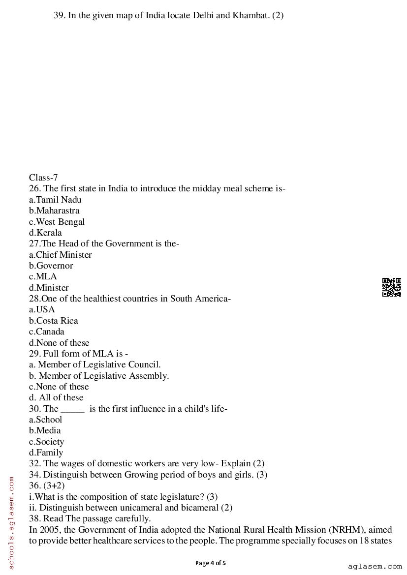 | Paper Here | 7th Mid Term Question Paper Social Science |