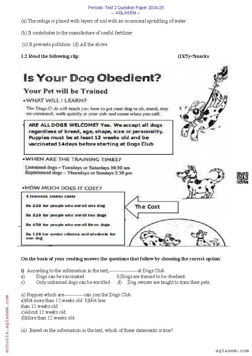 The complete pdf for Periodic Test I Question Paper for English is as follows.
