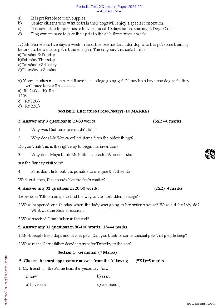 The Class 7 PT 2 Question Paper English 2024-25 PDF is is made available here by aglasem for your exam preparation. You can download the Class 7 PT II English Question Paper PDF from here on aglasem.com to prepare for this crucial exam. It is important to solve this English question paper, along with other Class 7 PT Question Paper if you are a student in the 7th grade, as it helps you understand the pattern and type of questions you will face in your upcoming periodic test exams. The English Periodic Test 2 Question Paper is designed to test the student’s understanding of various English concepts taught in the first term. Here, you will know everything about the Class 7 PT 2 English Question Paper, including tips, sample questions, and resources for effective preparation.