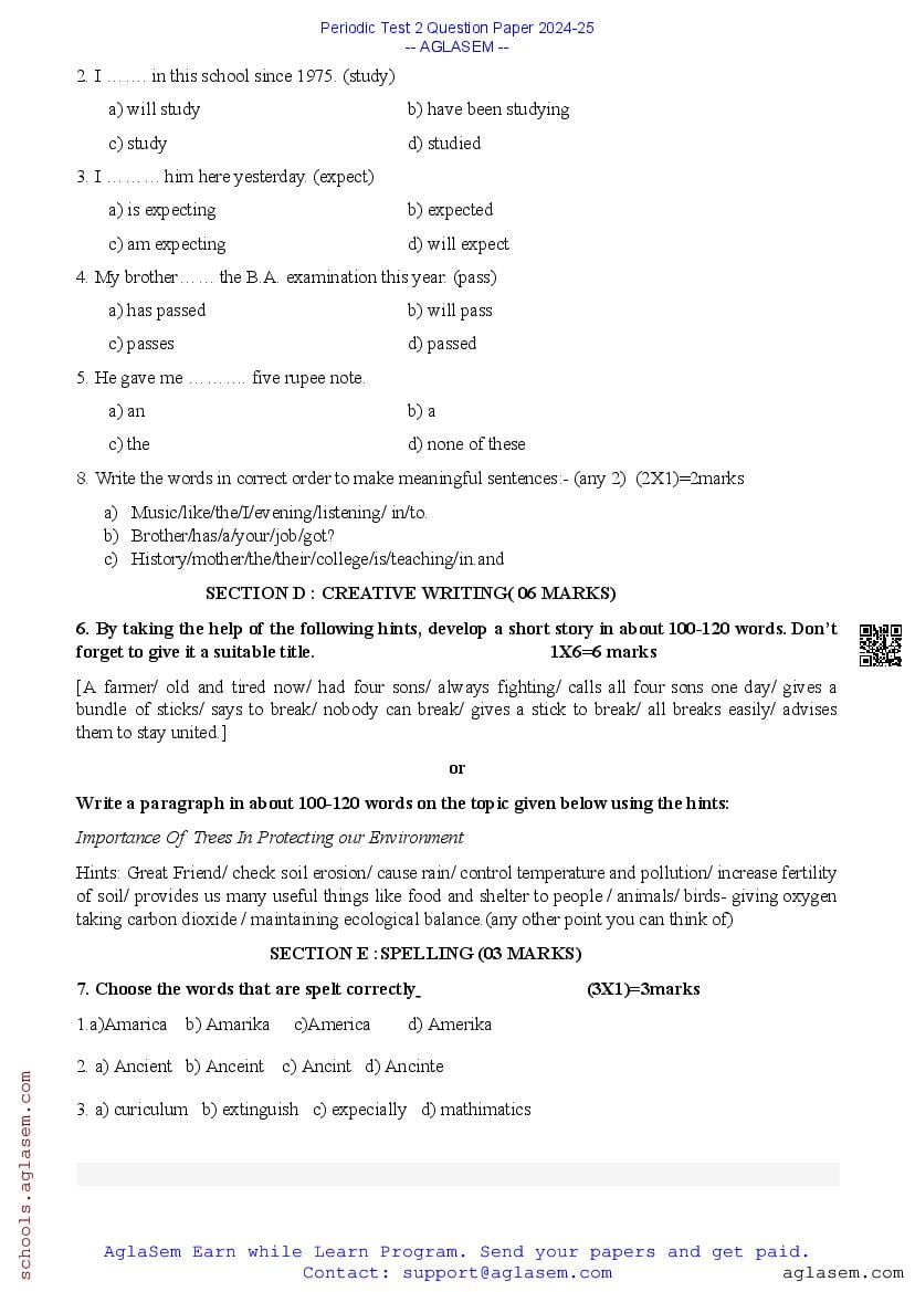Class 7 PT 2 Question Paper 2024-25 Download Link – Click Here to Download 7th Periodic Test 2 Question Paper