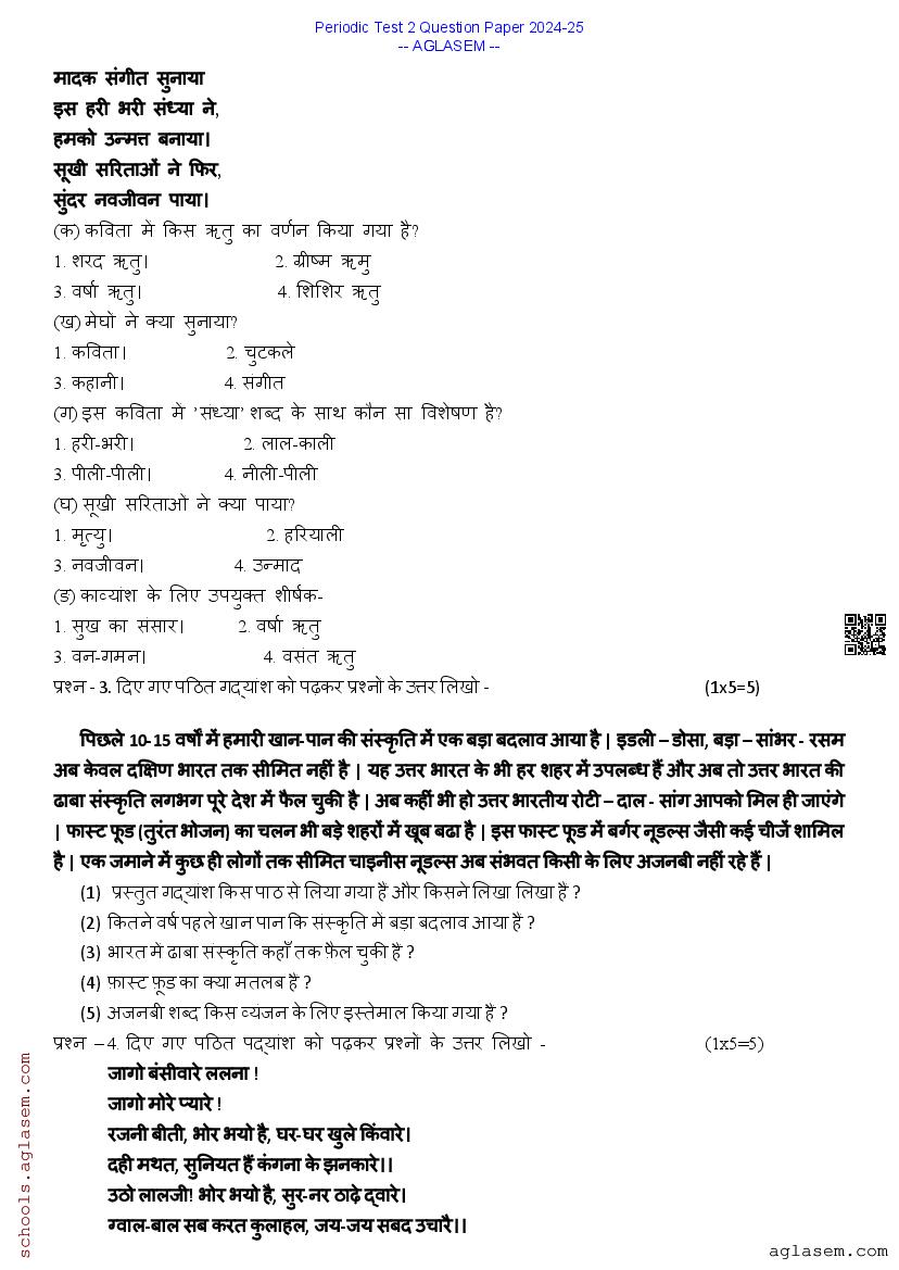The Class 7 PT 2 Question Paper Hindi 2024-25 PDF is is made available here by aglasem for your exam preparation. You can download the Class 7 PT II Hindi Question Paper PDF from here on aglasem.com to prepare for this crucial exam. It is important to solve this Hindi question paper, along with other Class 7 PT Question Paper if you are a student in the 7th grade, as it helps you understand the pattern and type of questions you will face in your upcoming periodic test exams. The Hindi Periodic Test 2 Question Paper is designed to test the student’s understanding of various Hindi concepts taught in the first term. Here, you will know everything about the Class 7 PT 2 Hindi Question Paper, including tips, sample questions, and resources for effective preparation.