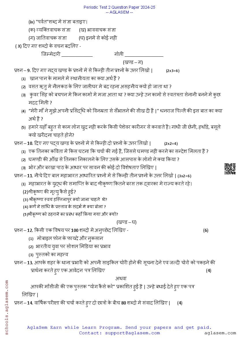 The complete pdf for Periodic Test I Question Paper for Hindi is as follows.