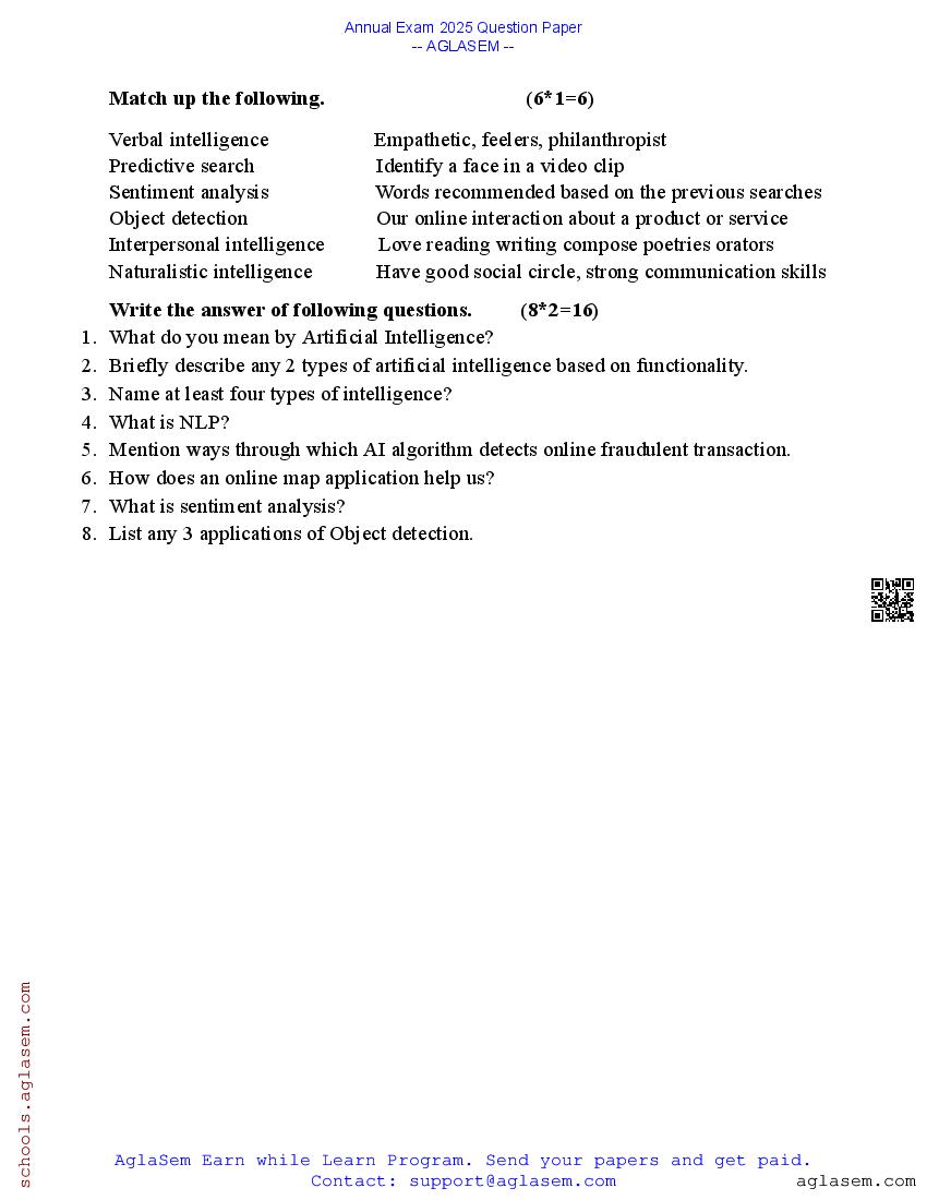 If you have any queries about Class 7 Artificial Intelligence Annual Exam Question Paper 2025, then please ask in comments below. And if you found this study material helpful, then please share with your friends!