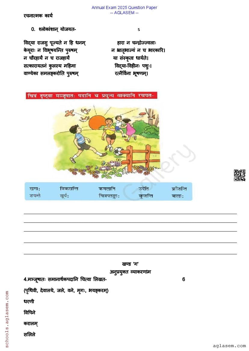 Class 7 Sanskrit Annual Exam Question Paper 2025 PDF
