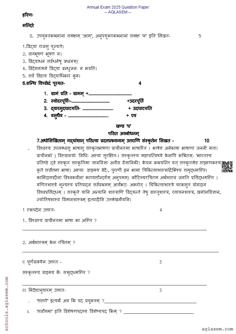 7th Annual Exam Sanskrit Question Paper – An Overview