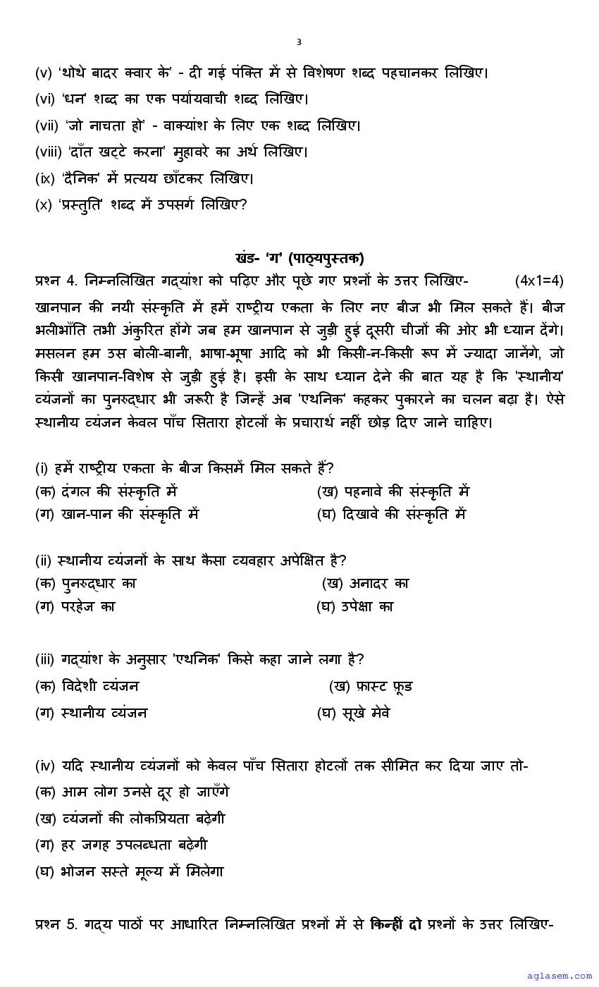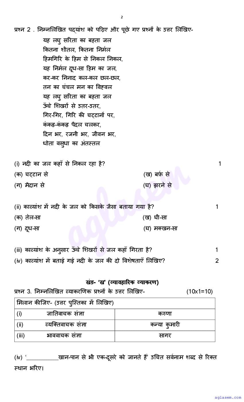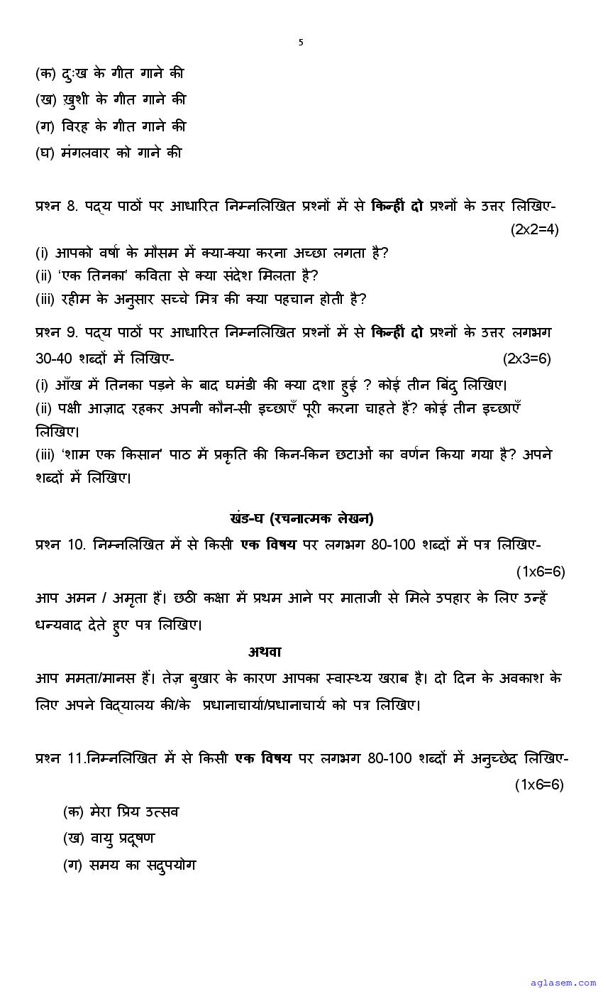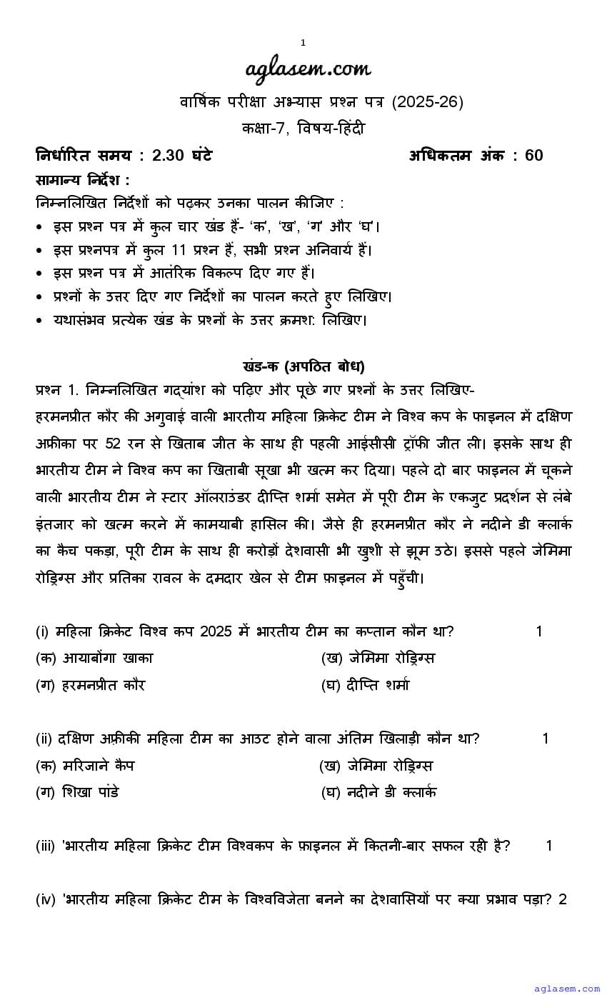 | AglaSem Paper | Class 7 Sample Paper of Hindi |