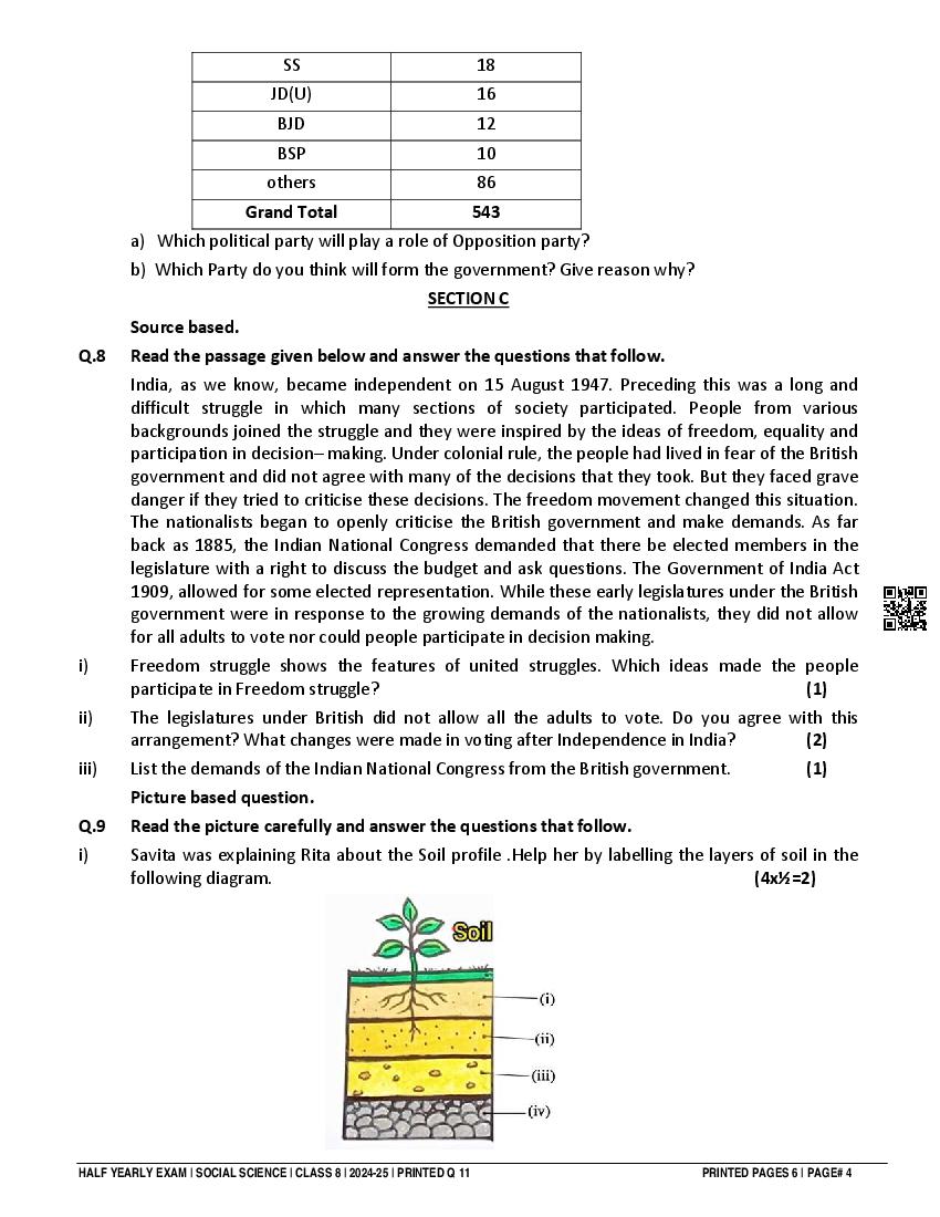 Class 8 Question Paper 2024-25 Social Science (Half Yearly) View Download
