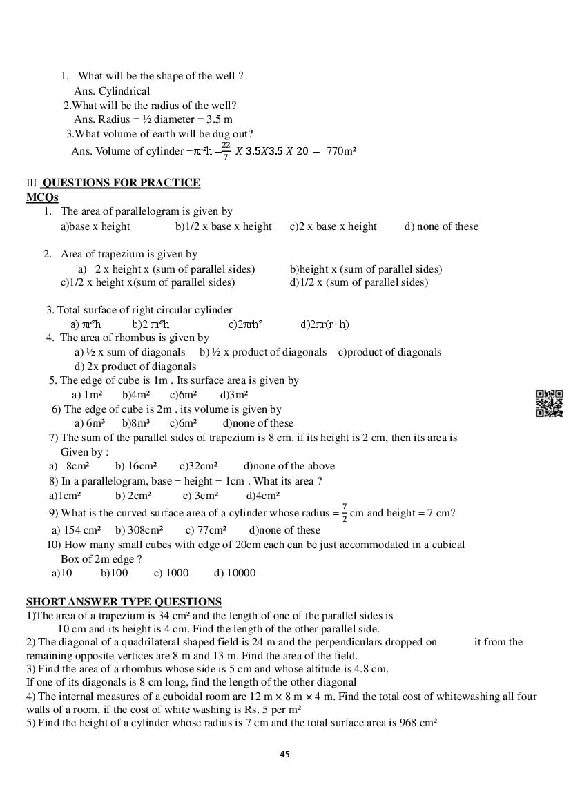 Class 8 Mensuration Notes for All Boards