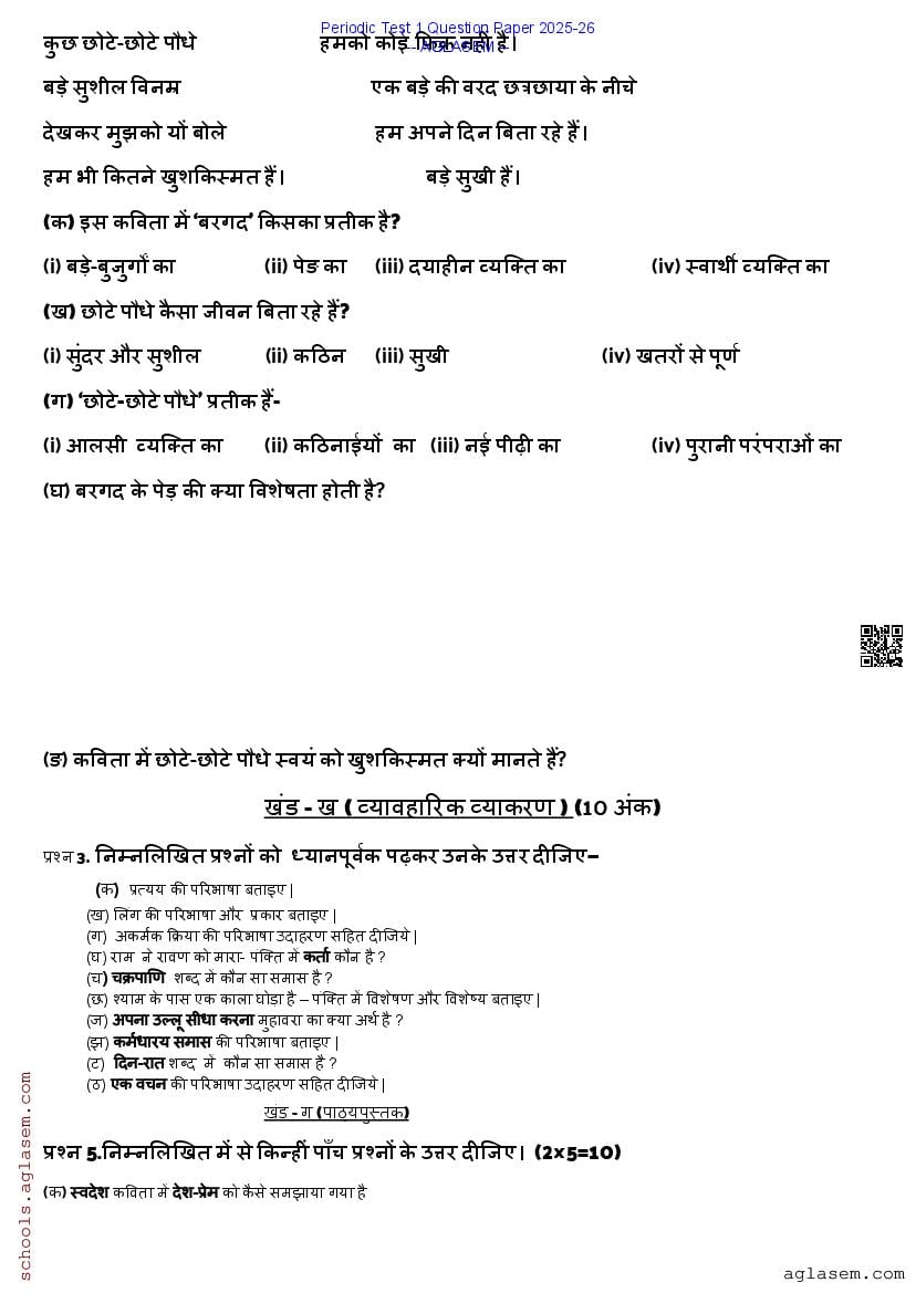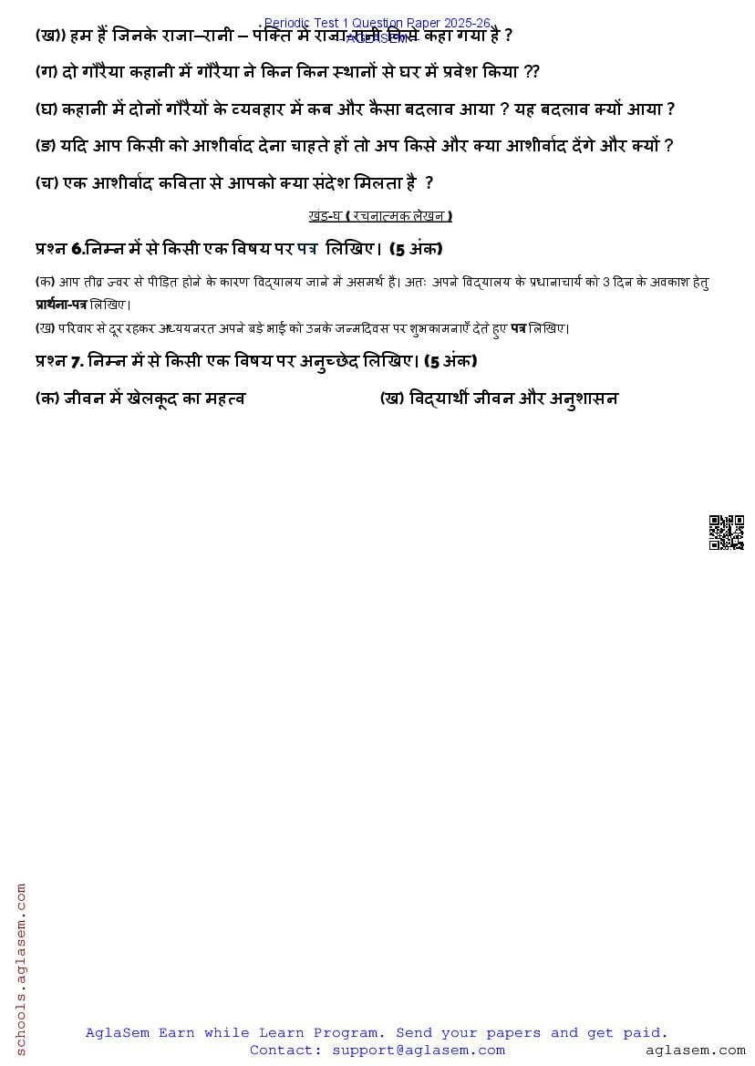 The complete pdf for Periodic Test I Question Paper for Hindi is as follows.